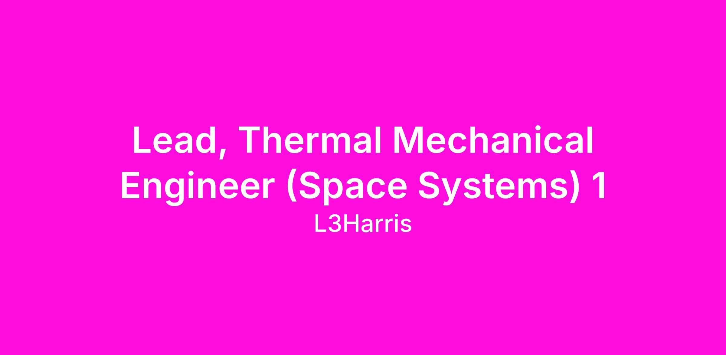 Job Title: Lead, Mechanical Engineering - Thermal Analyst