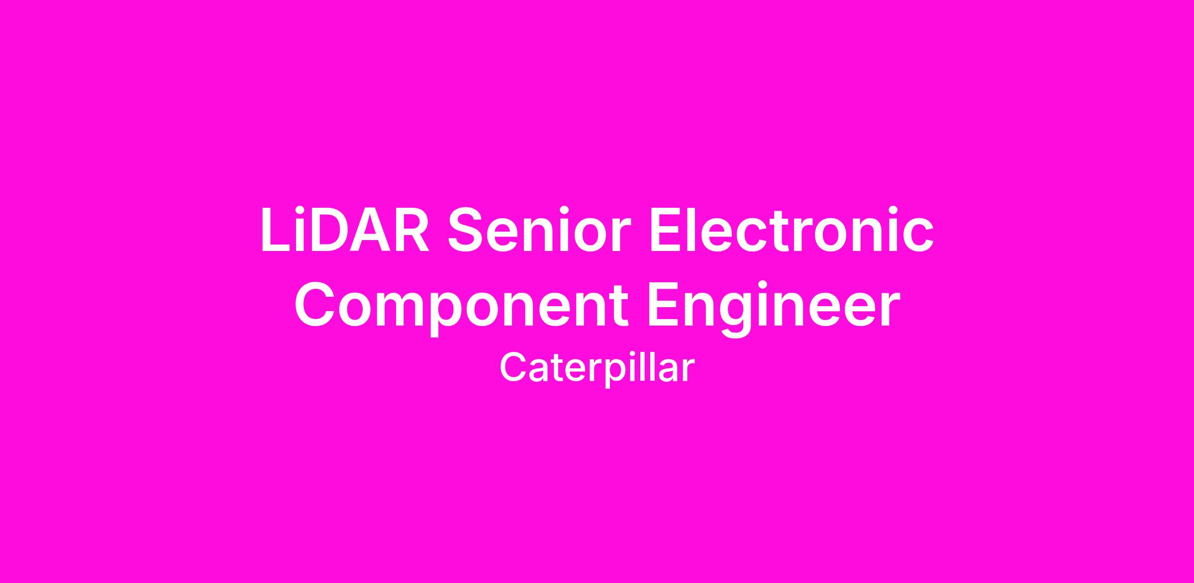 At Caterpillar, we work to help our customers build a better world. Without our team of talented, bright and driven individuals, we wouldn’t be the Caterpillar we are today. Now, this is your chance to join our team and do work that matters. We want you to help us enable customer success, make progress possible around the world and help our communities grow and thrive. We are looking for a dynamic, organized self-starter to join our Cat Technology Division as a LiDAR Senior Development Engineer at our Chillicothe, IL offices to develop and deploy new LiDAR products to our autonomous and automated machines.