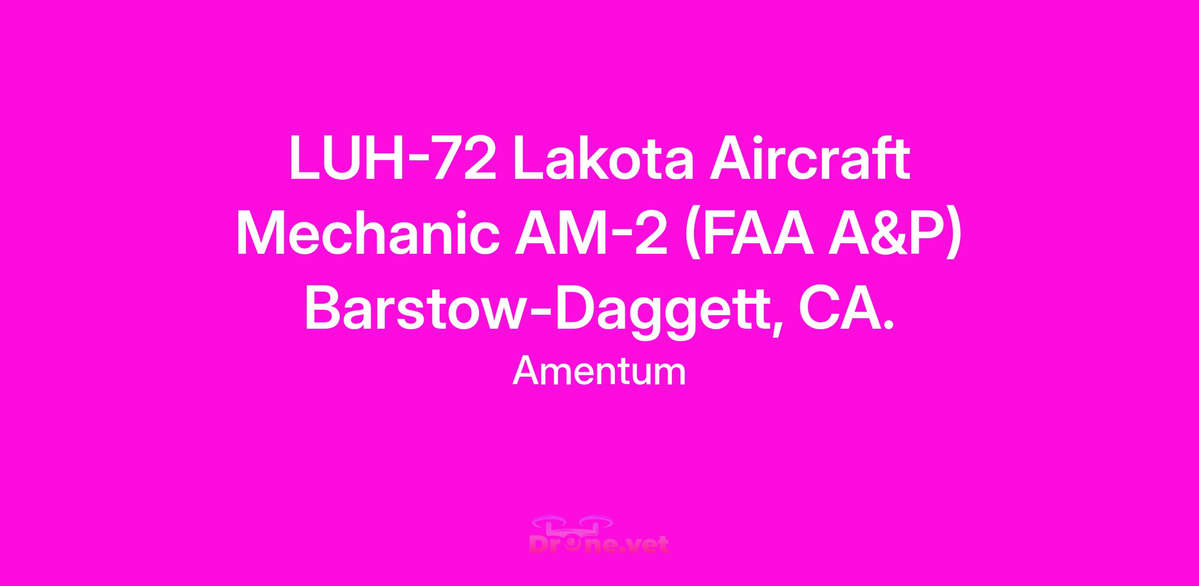 Valid FAA A&P Certificate Required, with a minimum of Three (3) years of maintainer experience, with Two (2) years of LUH-72 hands-on mechanic experience.