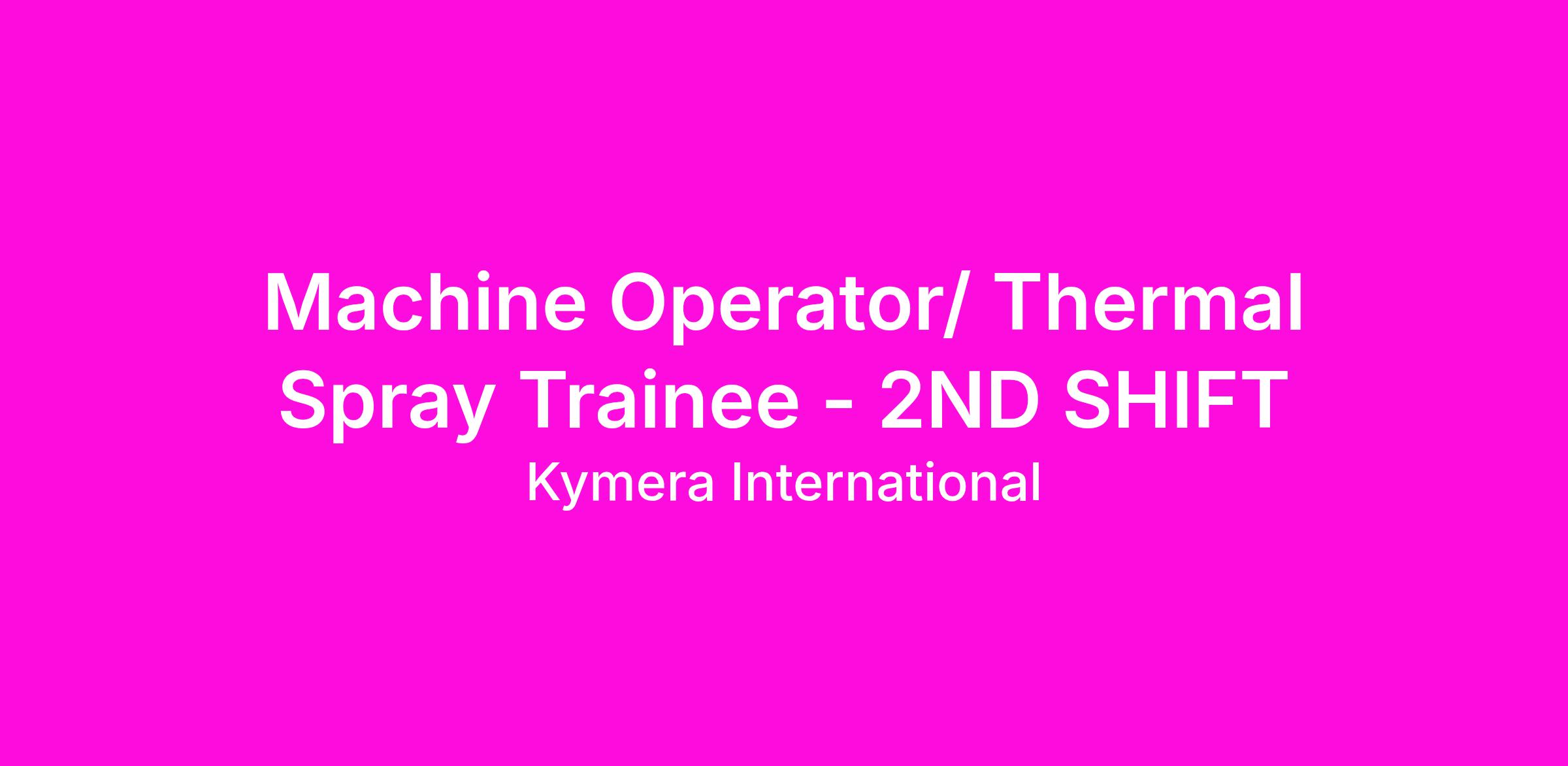 Job Title: Machine Operator/ Thermal Spray Trainee - 2nd Shift
