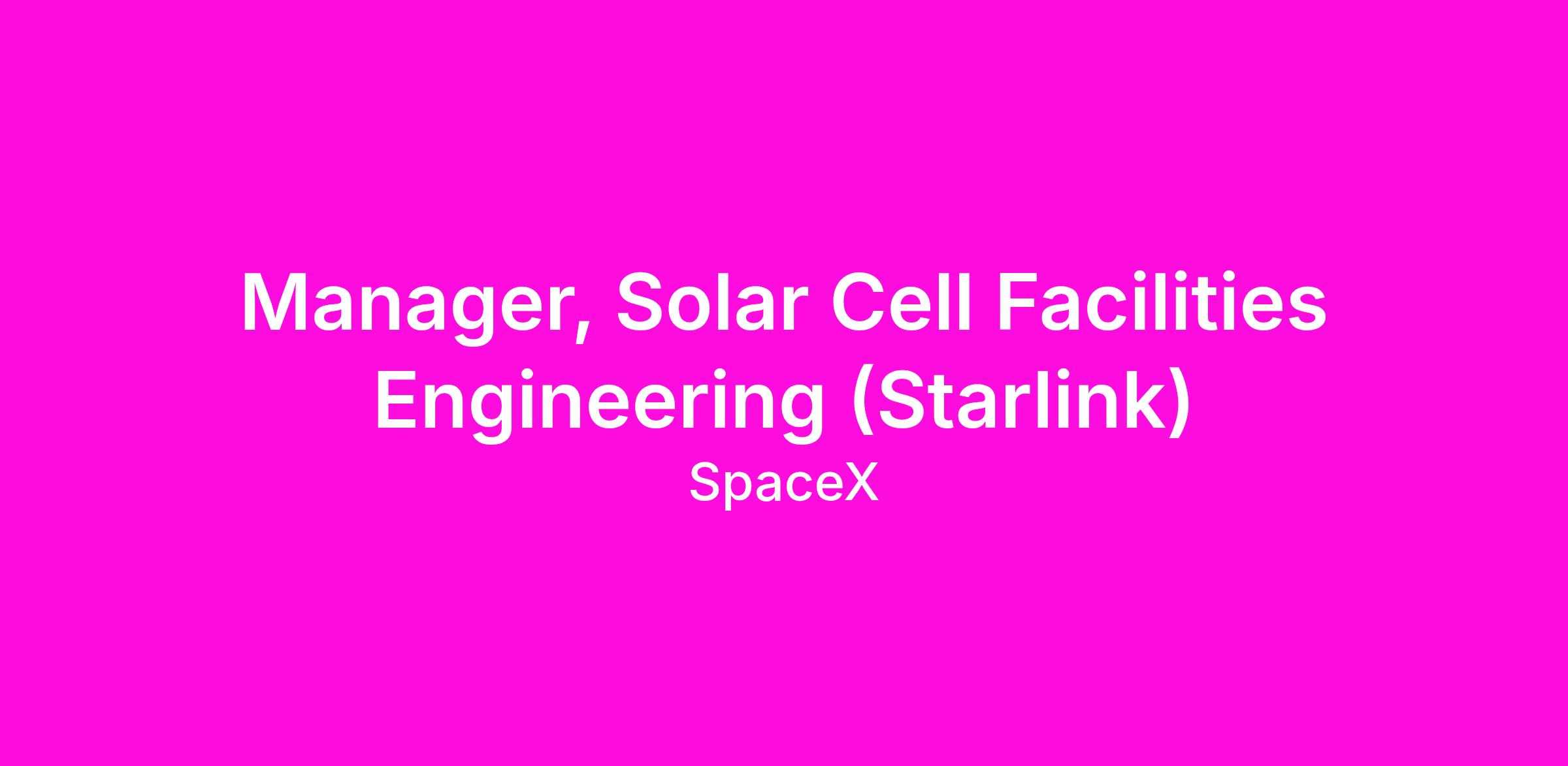 MANAGER, SOLAR CELL FACILITIES ENGINEERING (STARLINK)