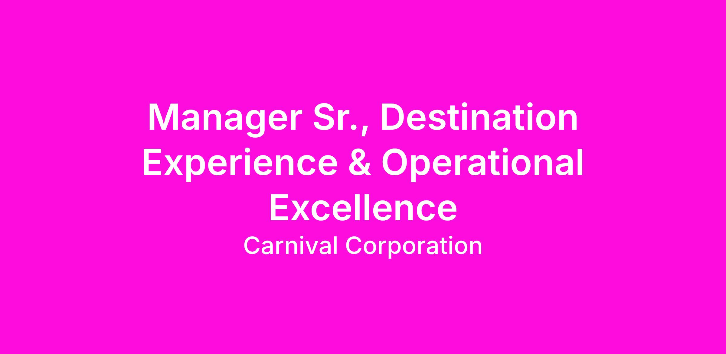 Manager Sr., Destination Experience & Operational Excellence