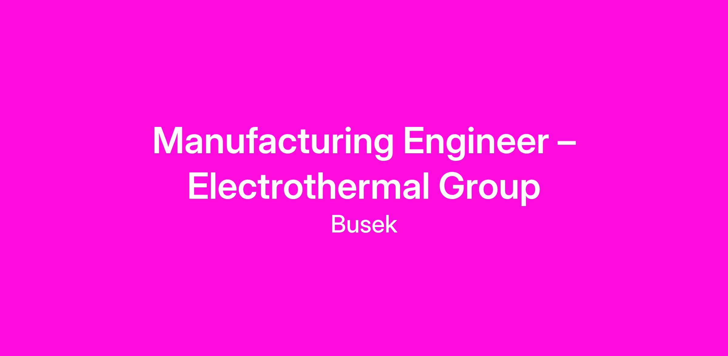 Manufacturing Engineer – Electrothermal Group Location: Busek Co. Inc. Department: Electrothermal Propulsion Position Summary The Manufacturing Engineer supports the development, optimization, and execution of manufacturing processes for electrothermal propulsion hardware used in aerospace applications. This role bridges engineering and production, ensuring hardware is built efficiently, repeatably, and in compliance with stringent quality and configuration control requirements. Key Responsibilities