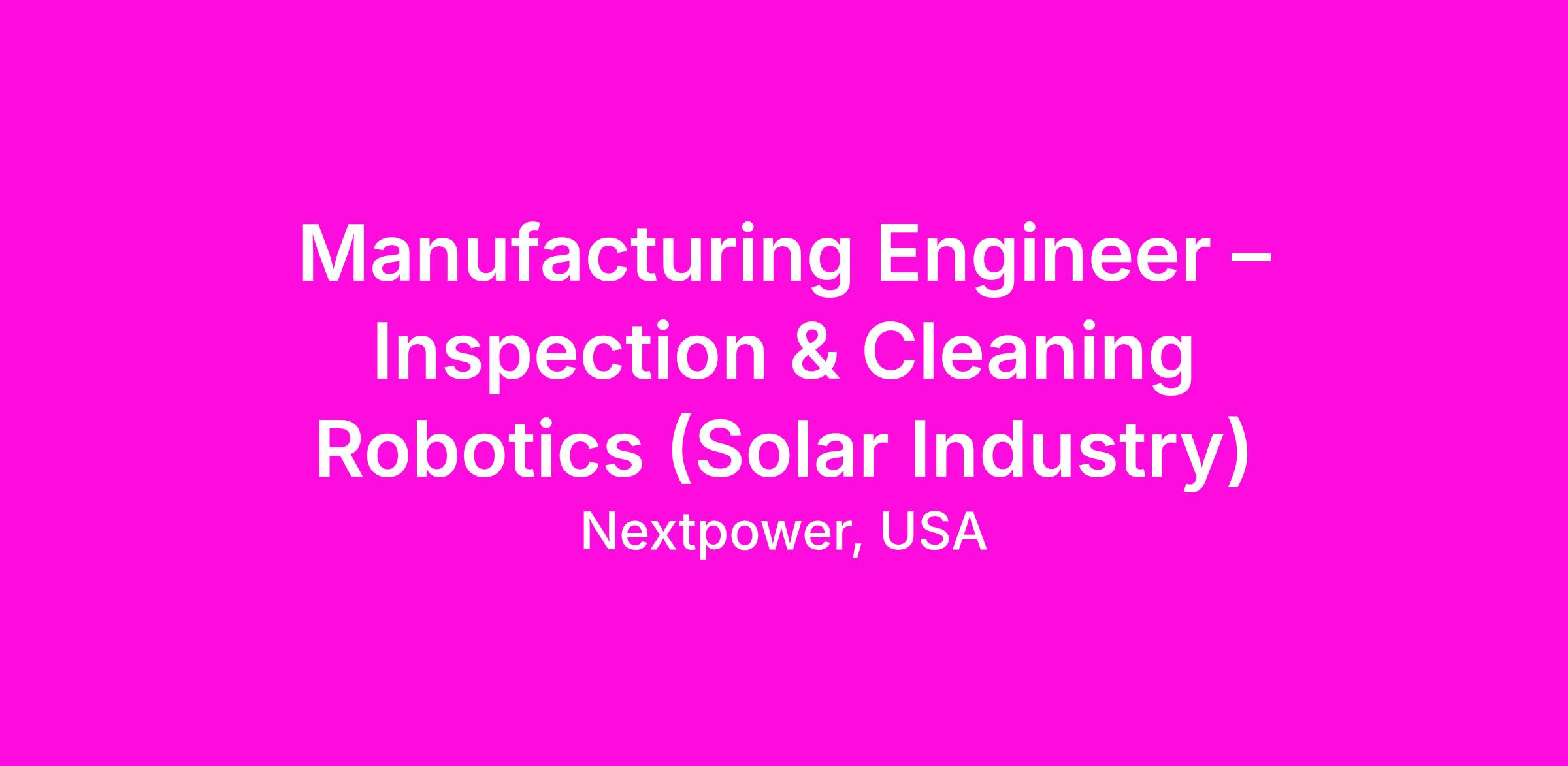 We are seeking an experienced Manufacturing Engineer to lead the industrialization, assembly, and test strategy for robotic inspection and cleaning systems deployed in utility-scale solar PV plants. This role owns the end-to-end manufacturing process, from in-house pilot builds through scale-up and successful transfer to contract manufacturing partners.