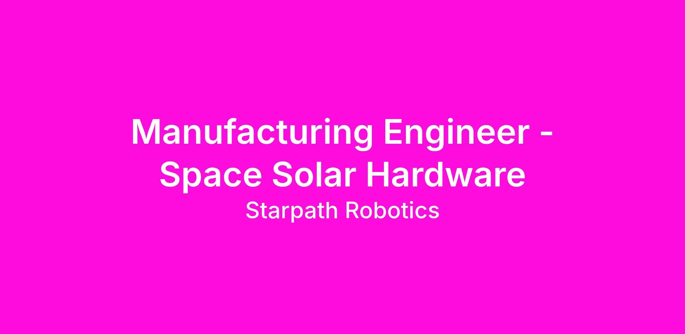 As a Manufacturing Engineer on the Starlight team, you will develop and own the processes, tooling, and inspection techniques that enable us to manufacture space solar hardware at high rate and with uncompromising quality.
