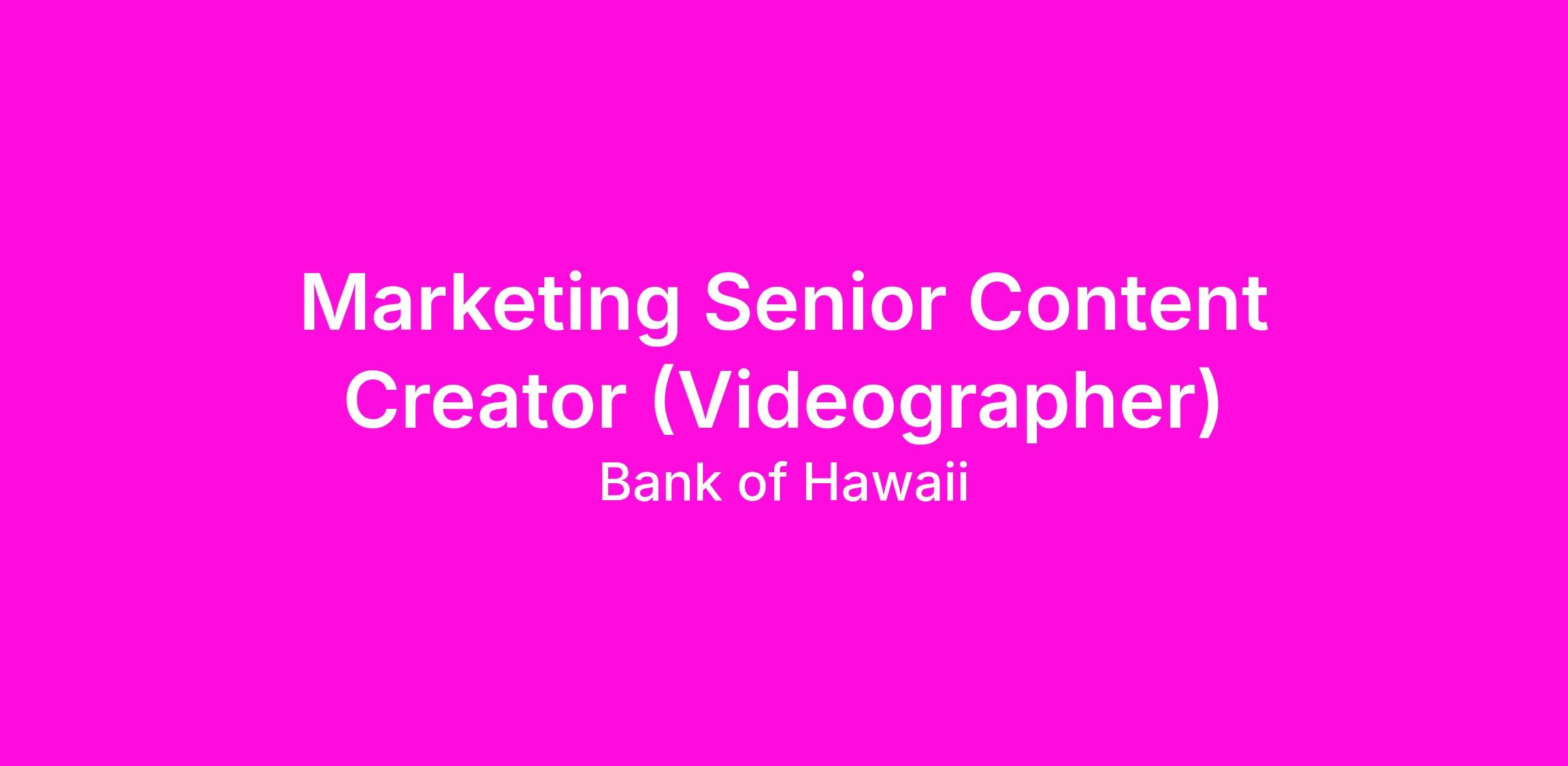 Marketing Senior Content Creator (Videographer)