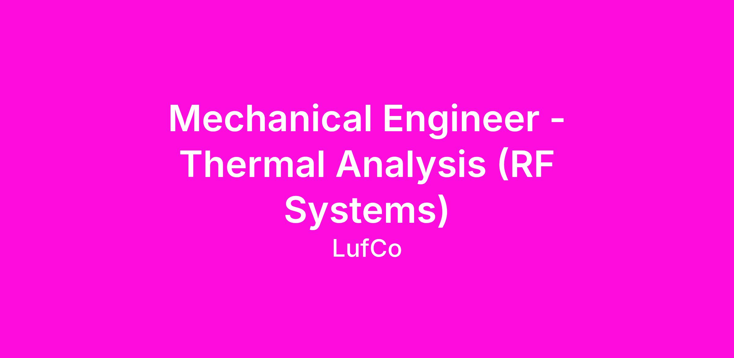 Position Title: Mechanical Engineer - Thermal Analysis (RF Systems)