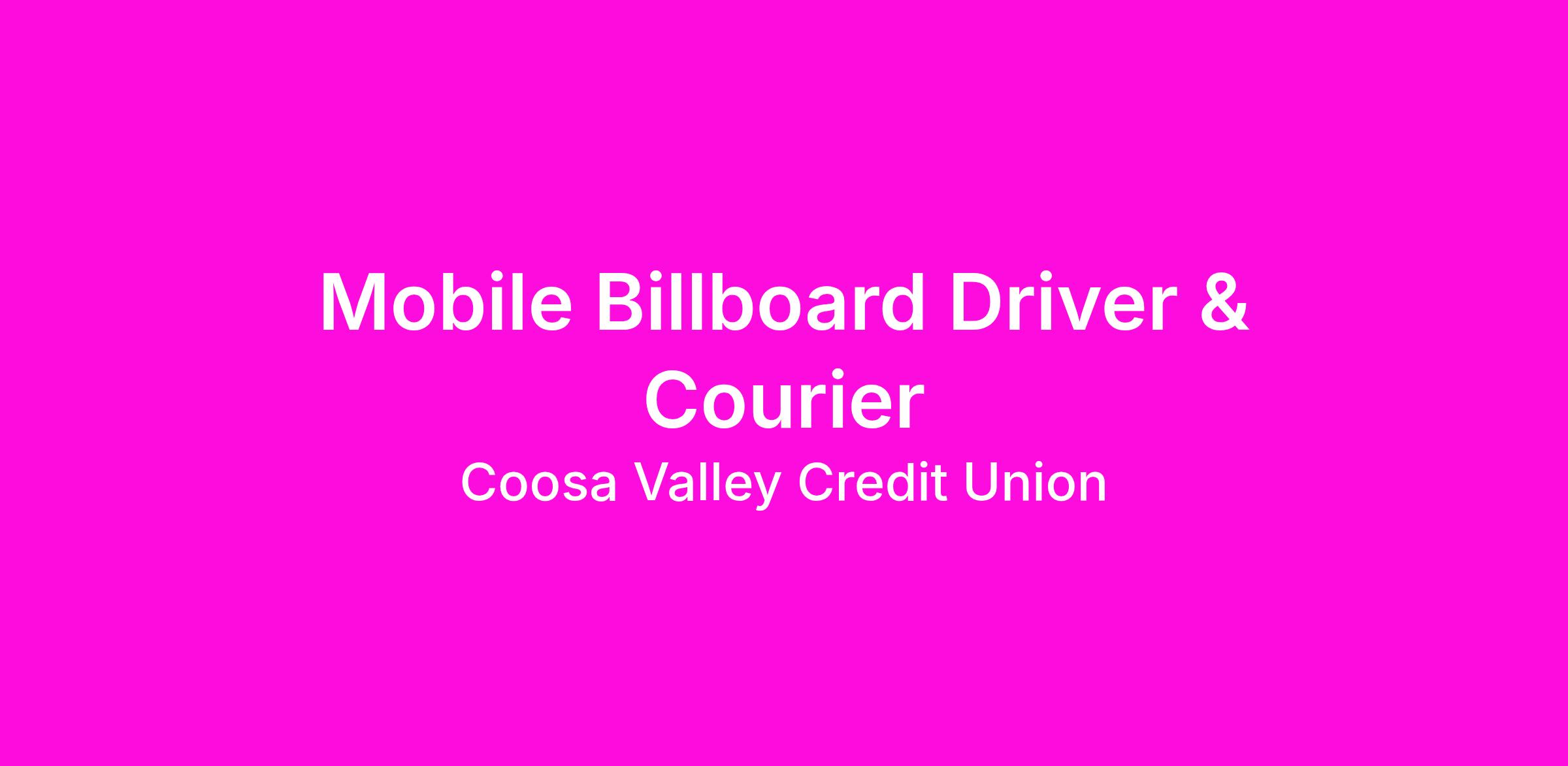 Coosa Valley Credit Union is excited to announce an opening for a Mobile Billboard Driver & Courier! We are looking for individuals who are passionate about helping our members achieve their financial goals and improve their financial well-being. If you are eager to be a part of a dynamic team dedicated to making a positive impact in the lives of our members, we encourage you to apply today for this exciting opportunity within Coosa Valley Credit Union!