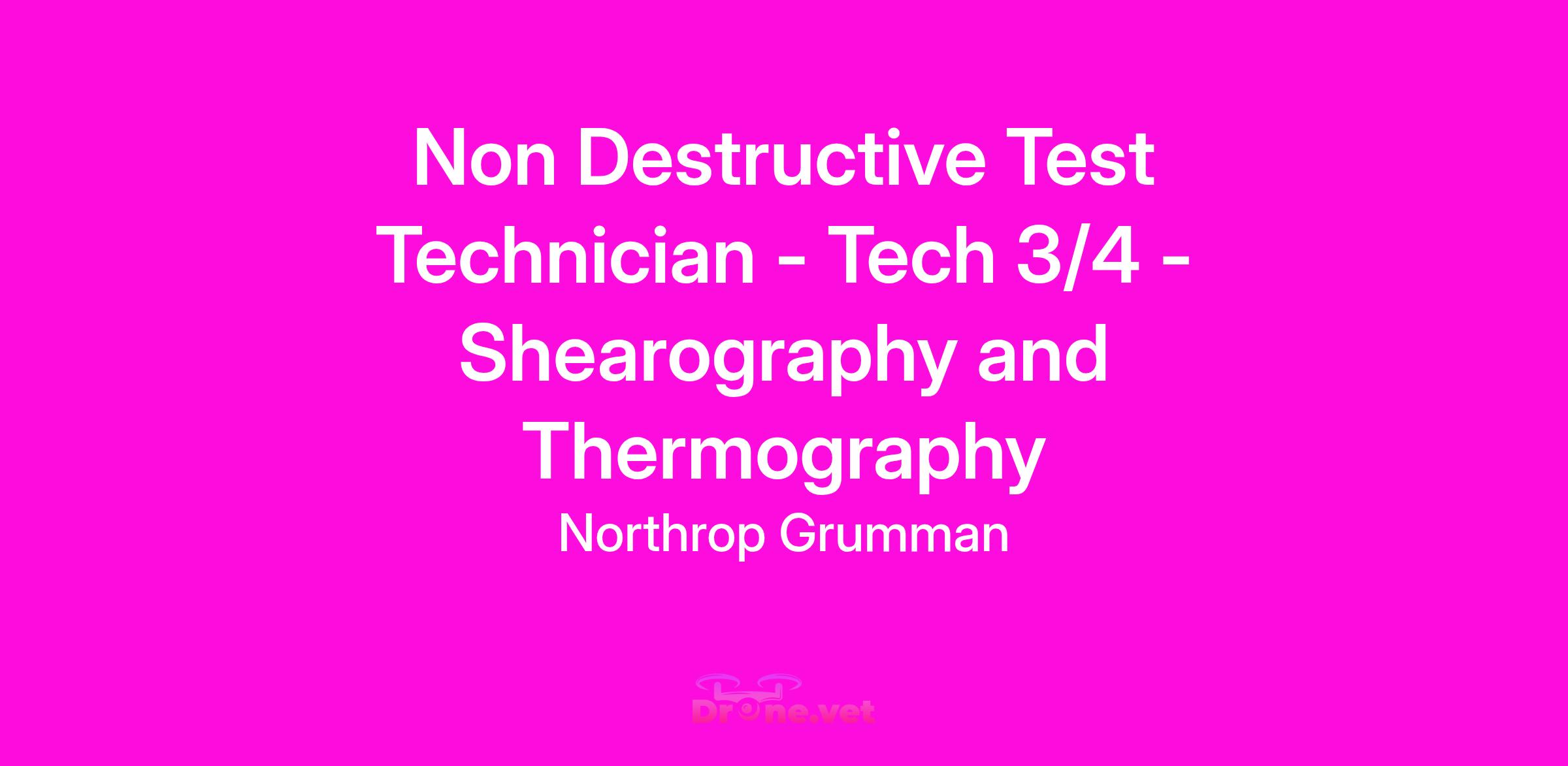 Northrop Grumman Aeronautics Systems (NGAS) is looking for a Non Destructive Test Technician - Tech 3/4 - Shearography and Thermography for programs located in the Palmdale, CA facility within the Quality department.