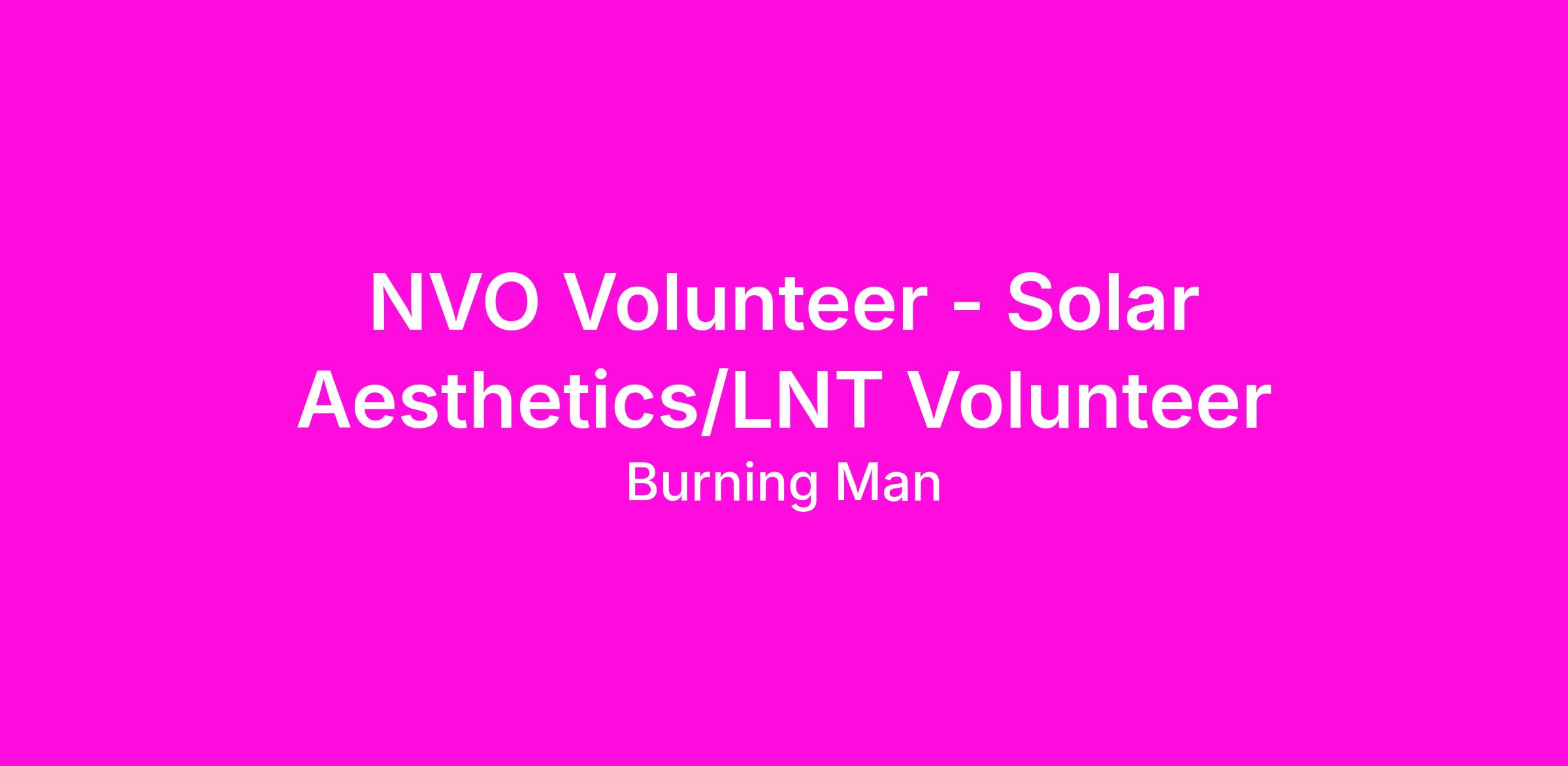 NVO Volunteer - Solar Aesthetics/LNT Volunteer