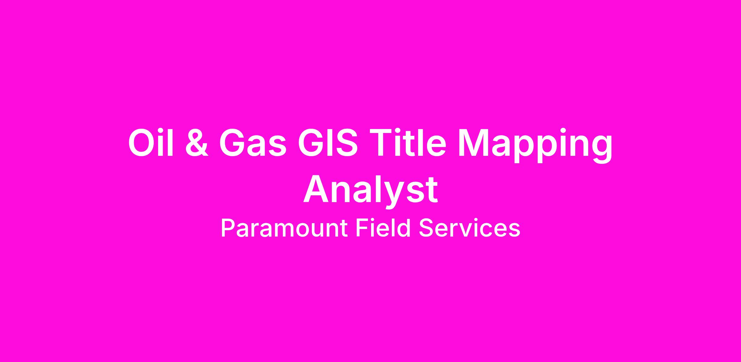 We are seeking an experienced Oil & Gas GIS Title Land Analyst to join our team. This role combines geographic information systems (GIS) expertise with oil and gas land title knowledge, supporting complex mapping and spatial analysis across multiple producing basins.