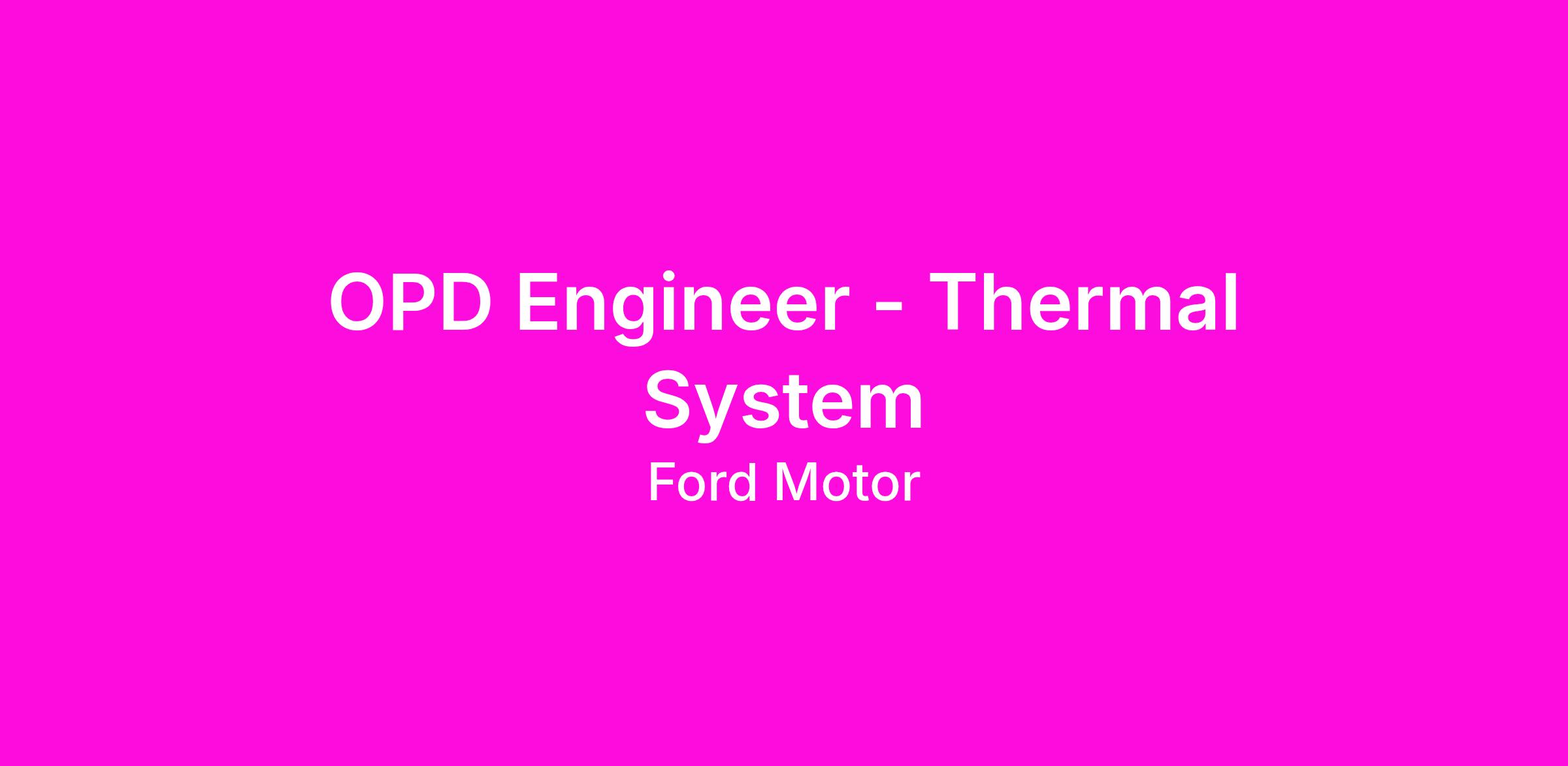 IPTSE Ongoing Product Development (OPD) is part of Ford Motor Company’s Product Development Quality organization.  OPD engineers are responsible for identifying, containing and resolving ongoing quality issues after product launch.  OPD engineers will work closely with the Thermal Cooling and Climate Systems design teams, calibration, manufacturing, plant vehicle teams and core quality.