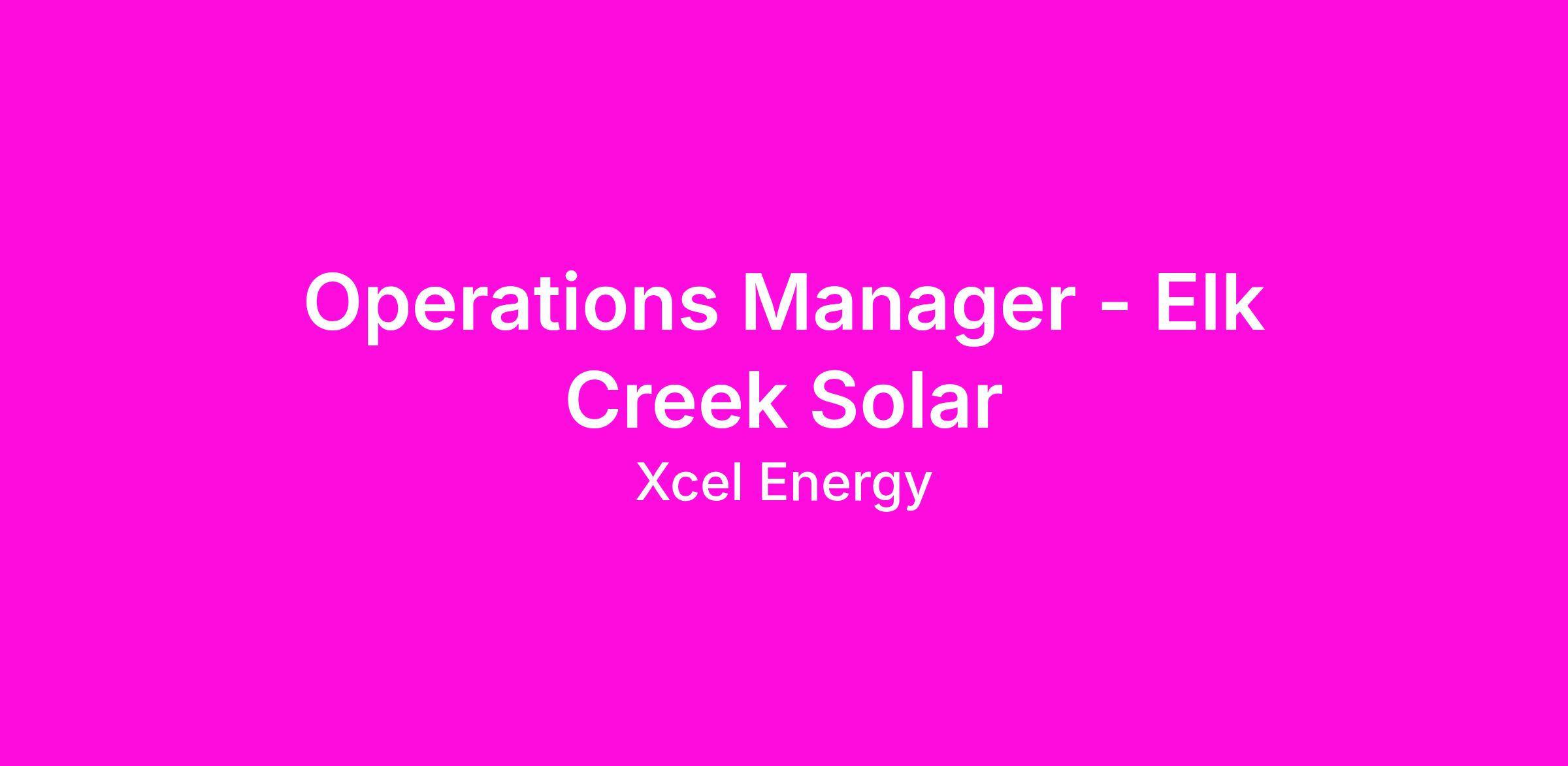 Operations Manager - Elk Creek Solar