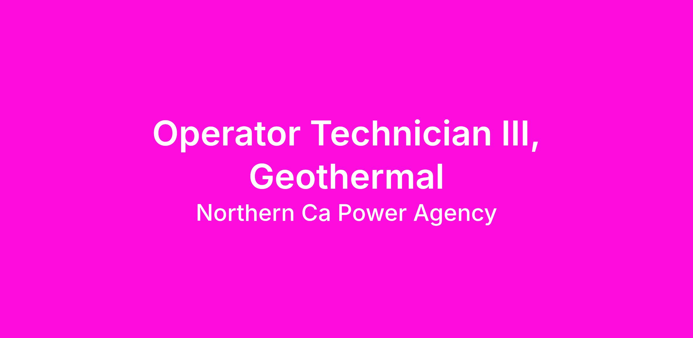 Completion of the NCPA Geothermal Operating Training Program. In addition, pass the operator/technician aptitude test and complete the technical training as defined by management as necessary to fulfill the job’s duties and responsibilities.