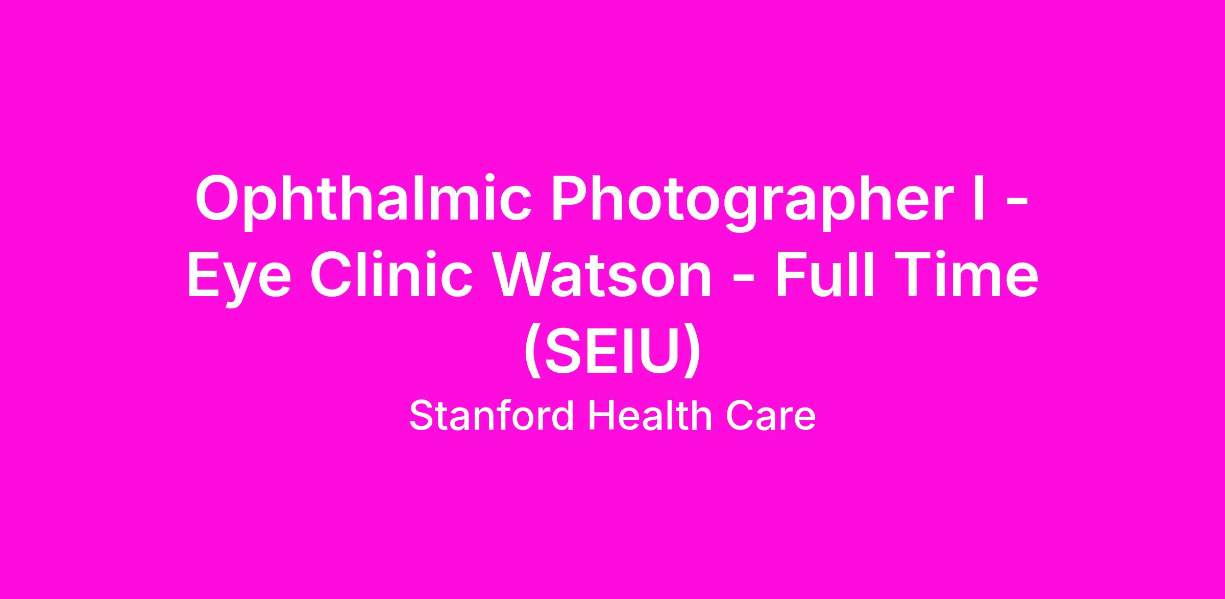 Ophthalmic Photographer I - Eye Clinic Watson - Full Time (SEIU)