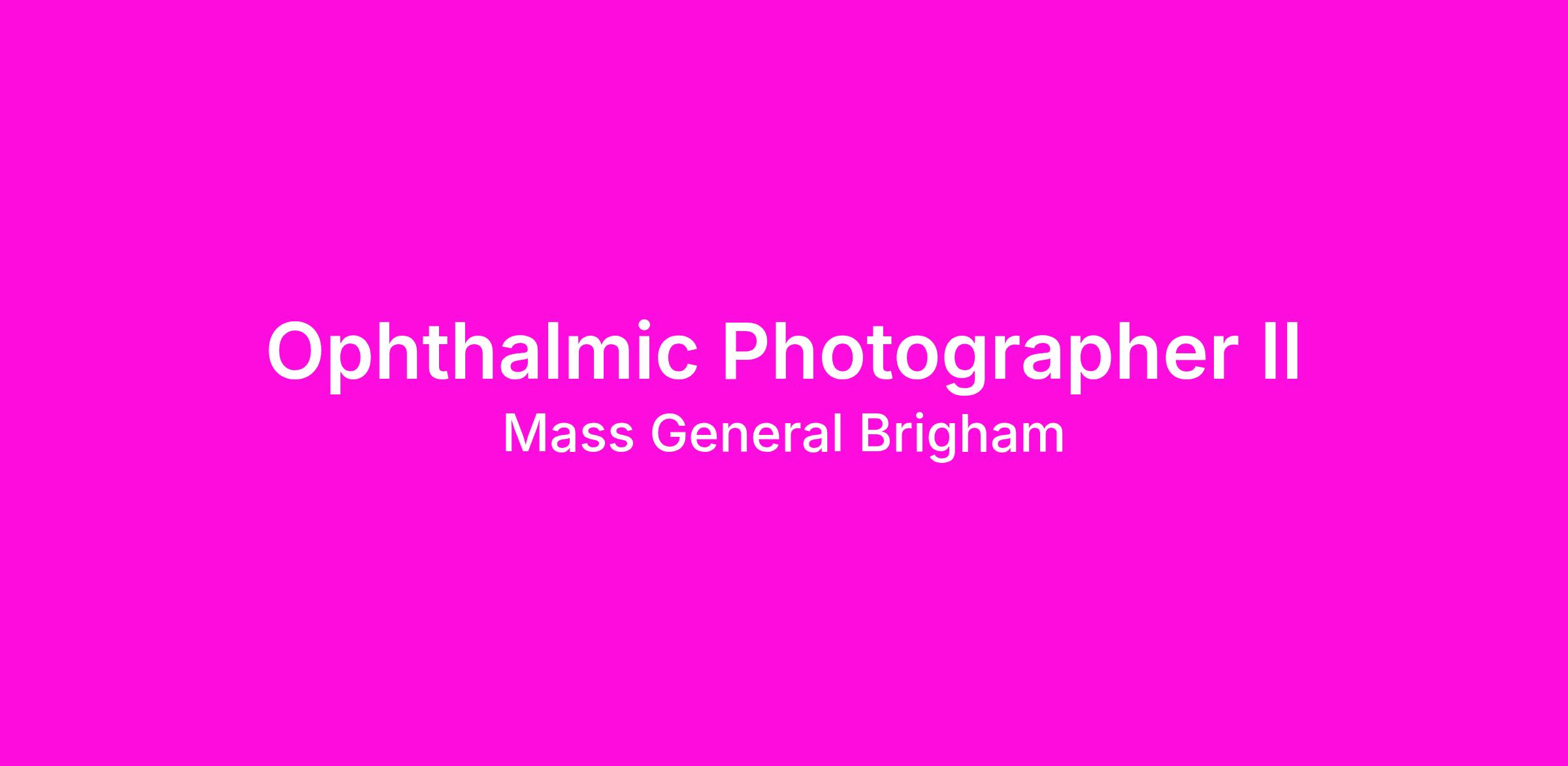 Under general direction performs ophthalmic photography, medical photography, projection, and videography. Interacts with senior medical staff in the coordinated implementation of ophthalmic photography services.