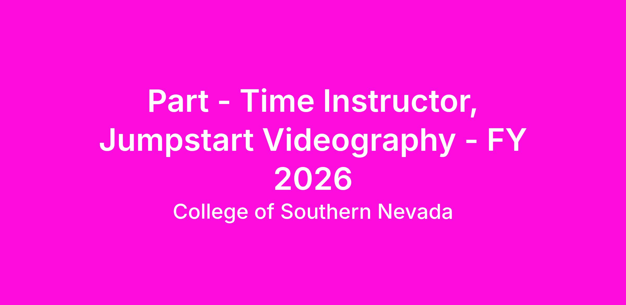 Please Note: This job announcement is not an offer of employment. It will be open for a period of one year and has been established to collect a robust candidate pool for part-time positions that may become available within the designated discipline at CSN. If a part-time position becomes available within the discipline, the department will review the application material of the candidates who have applied and will invite select candidates to interview based on their qualifications. Should a candidate be selected for a part-time instructor position, no minimum course load is guaranteed and teaching assignments, if any, are contingent upon various factors, including but not limited to, minimum student enrollment and/or department need. No reimbursement for travel expenses will be provided to local or out of area/out of state candidates and there is no guarantee of continued or future part-time and/or full-time employment.