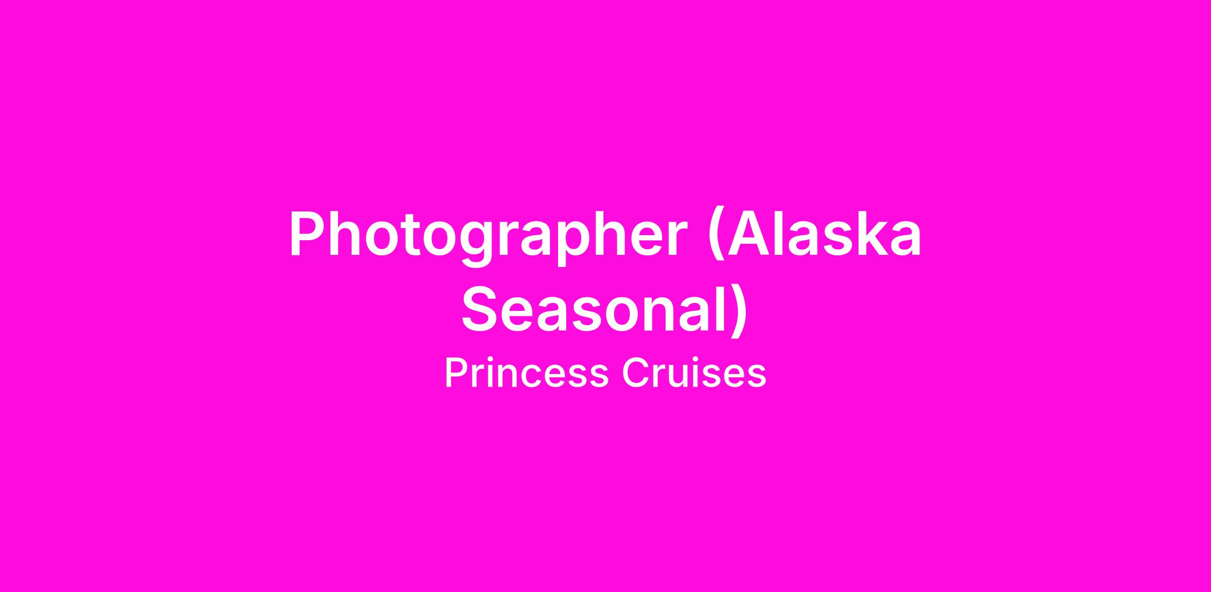 You’ll be expected to consistently capture volumes of professional images of cruise guests, both in onboard settings and shoreside settings in Alaskan ports and shore-excursions.