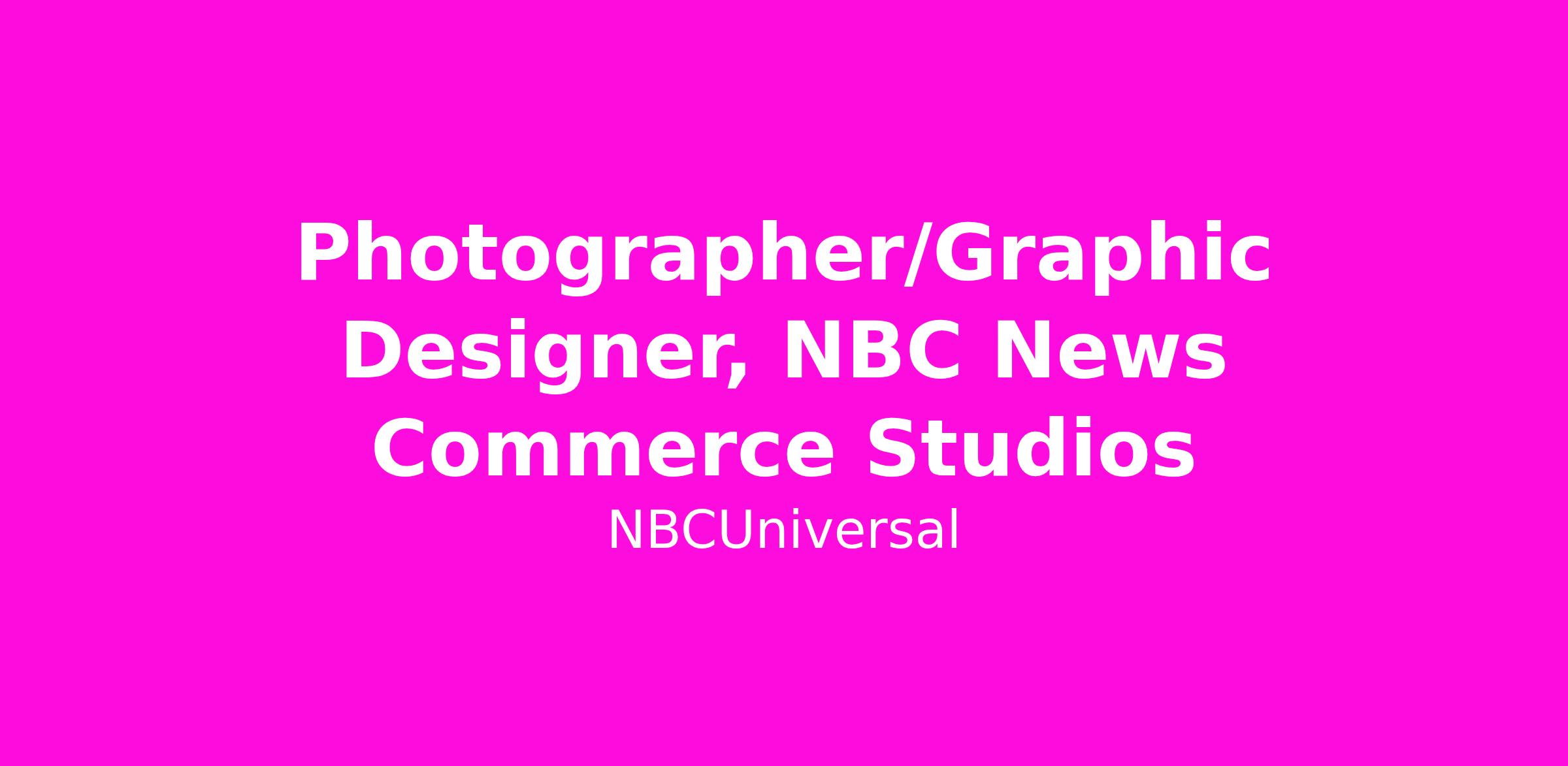 NBC News Group Commerce is seeking a versatile Photographer and Graphic Designer to join our team. The ideal candidate will be a creative powerhouse, highly skilled in both general photography and graphic design skills. This position will be responsible for supporting the NBCU Commerce Studios Art Team in the creation of graphics and photos as needed.