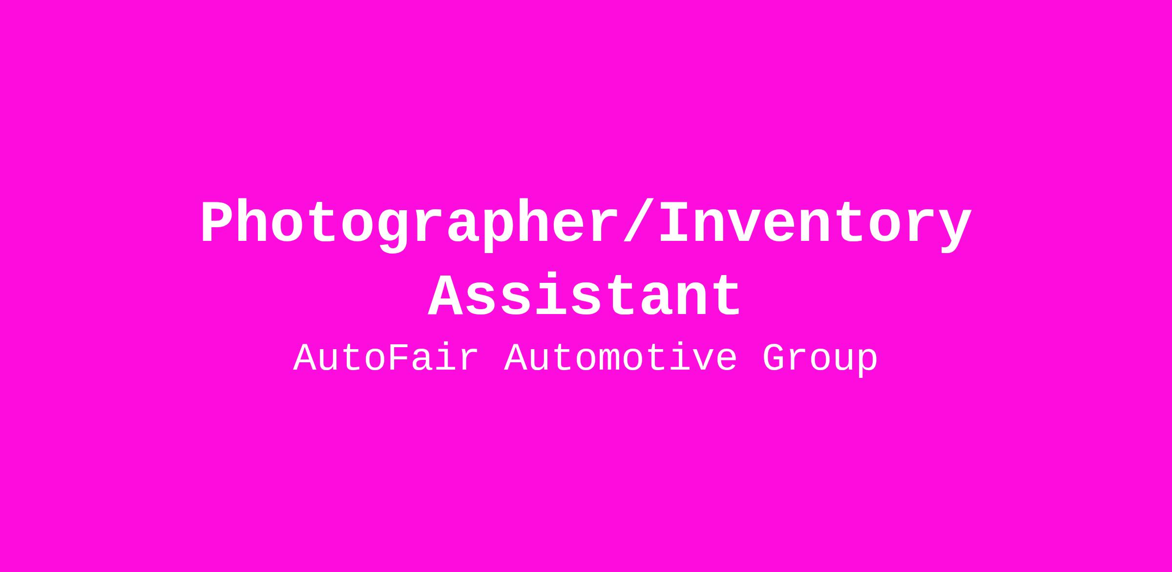 AutoFair Hyundai is seeking a Photographer/Inventory Assistant to join our team. Do you enjoy taking pictures but are not getting paid enough to do it? Do you want to work with a company that genuinely cares about its employees and the community in which it is located? Apply today!