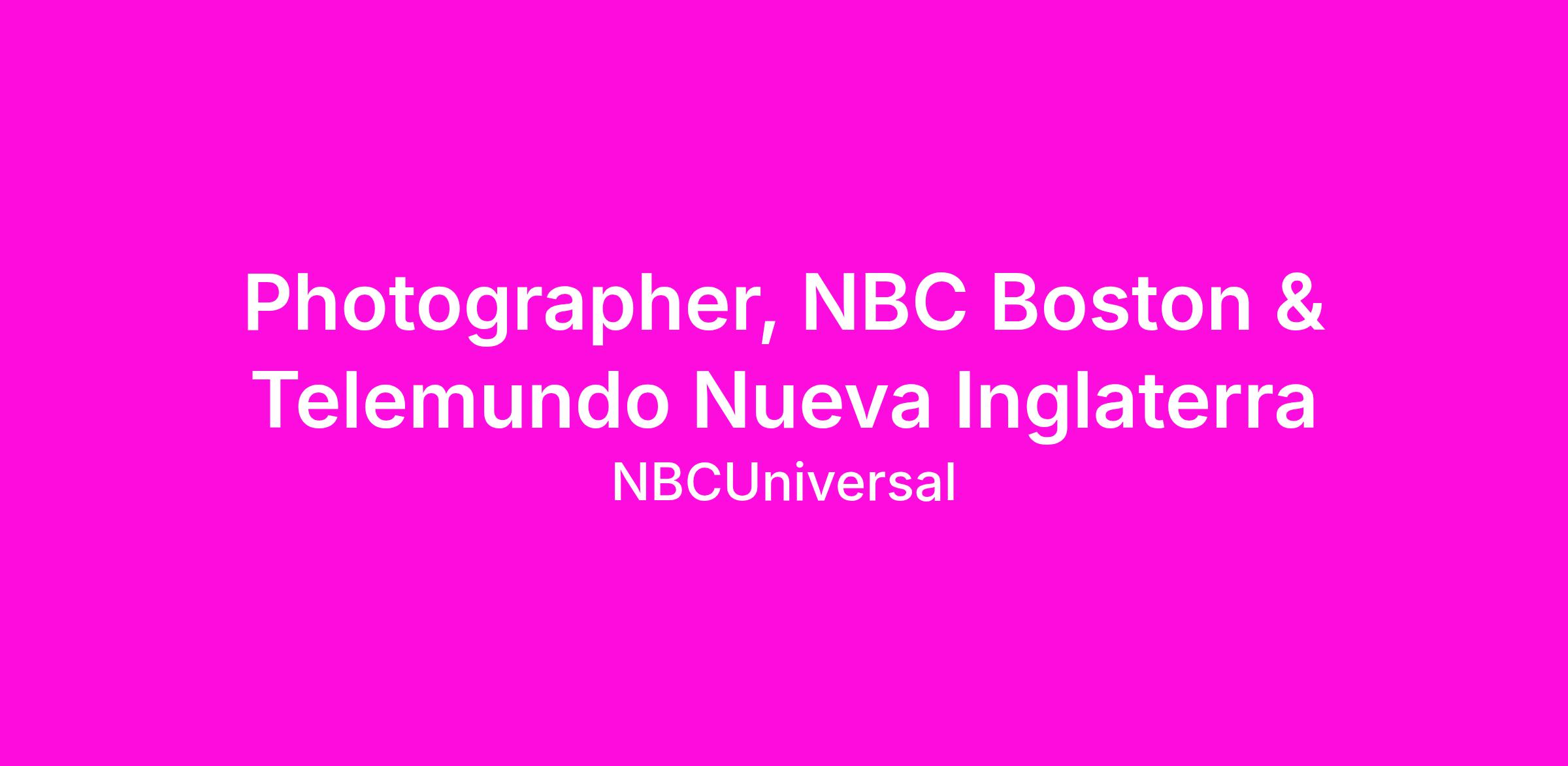 NBC Boston & Telemundo Nueva Inglaterra are looking for a team player to join us as a News Photographer. In this role, you will be responsible for shooting and editing stories, including spot news and features.