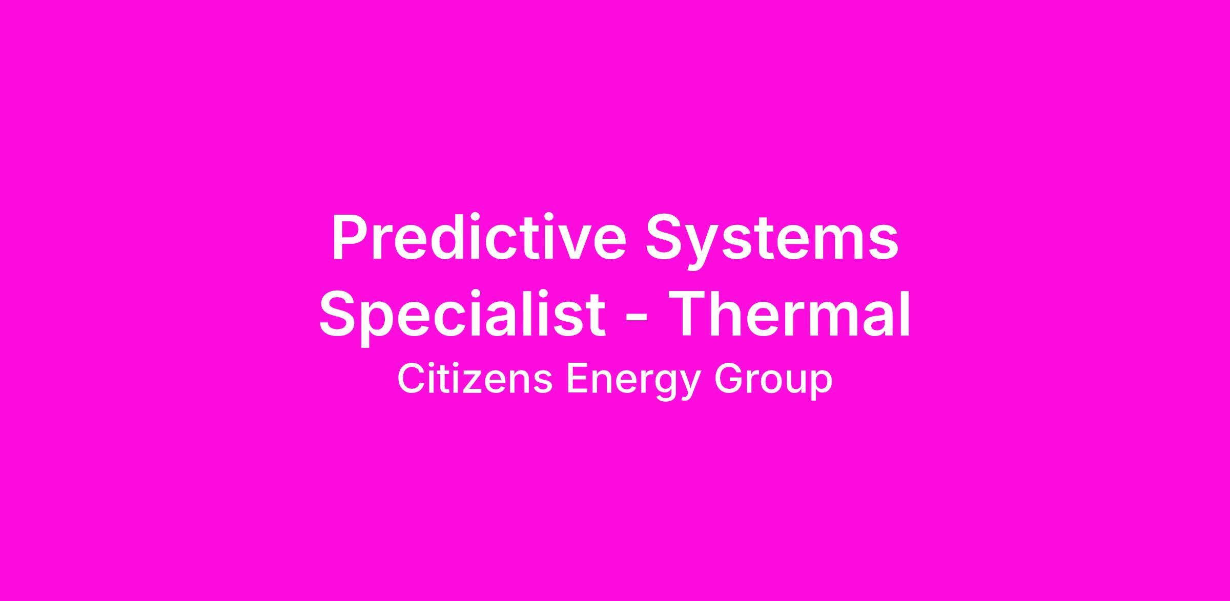 We have a career opportunity for a Predictive Systems Specialist to join our team!