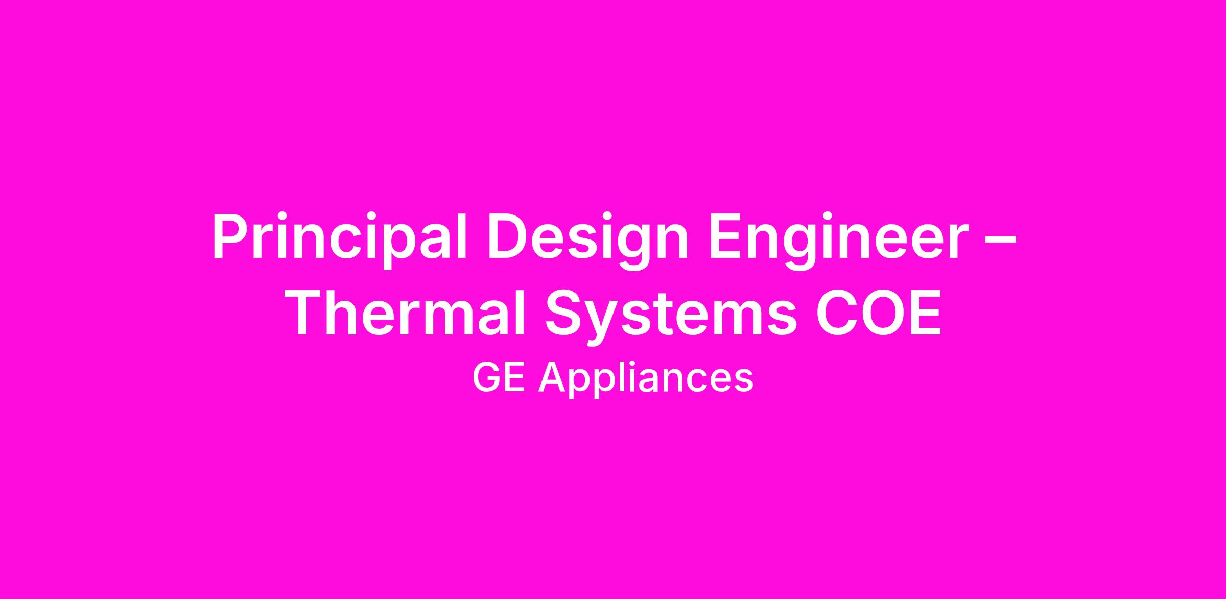 We are seeking a highly motivated Principal Design Engineer – Thermal Systems who is interested in leading the development, evaluation, and execution of projects within refrigeration technologyPreferred Qualifications:
