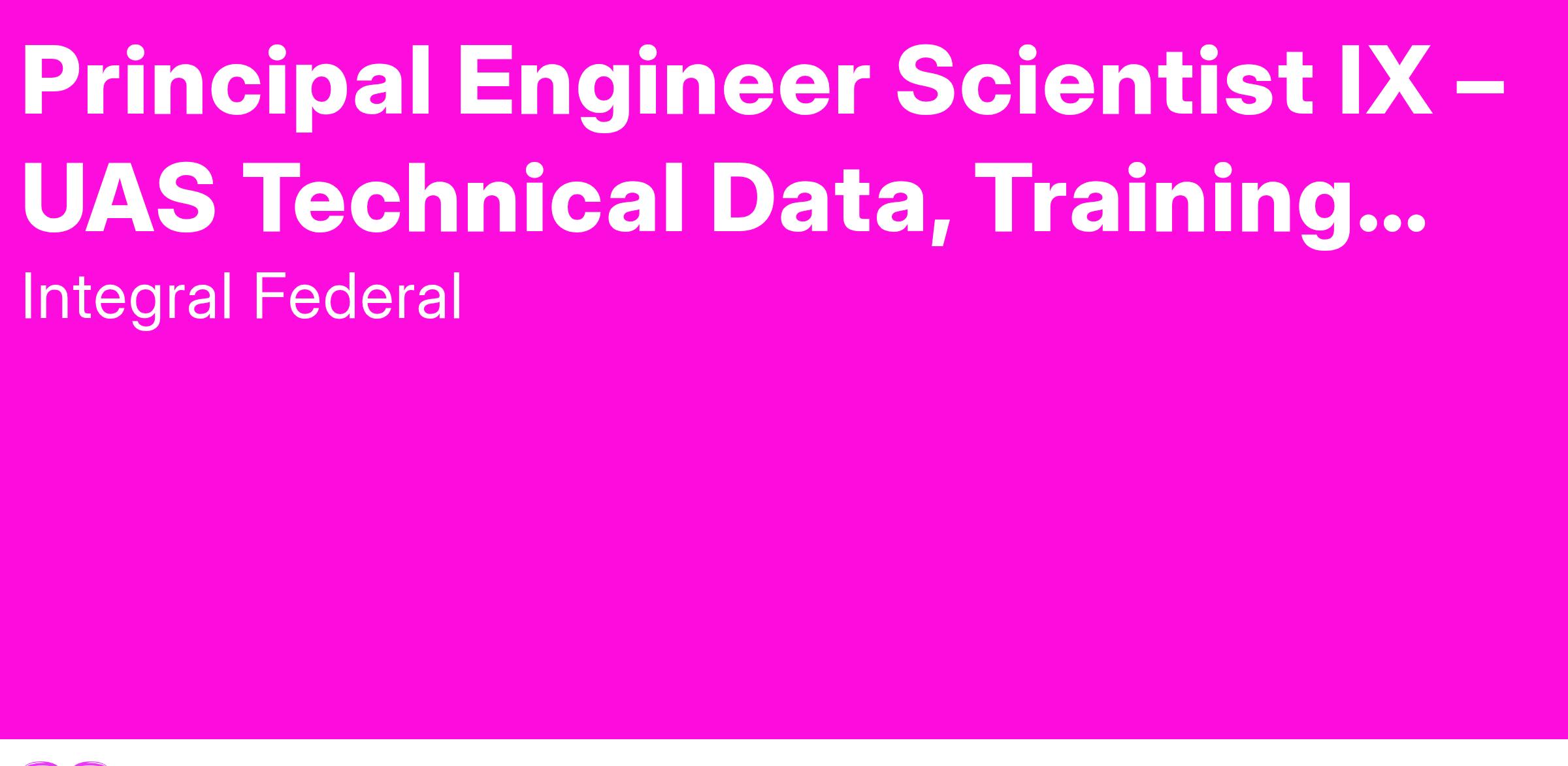 The Principal Engineer Scientist IX will provide expert-level technical leadership in managing technical data, training systems, and advanced engineering services for Uncrewed Aircraft Systems (UAS). This role requires a highly experienced professional to support the design, development, evaluation, and sustainment of UAS systems, including their associated technical data frameworks and training devices. The Engineer Scientist IX will serve as a key advisor to government stakeholders, lead cross-functional teams, and ensure the successful execution of complex engineering and scientific tasks aligned with UAS lifecycle requirements.