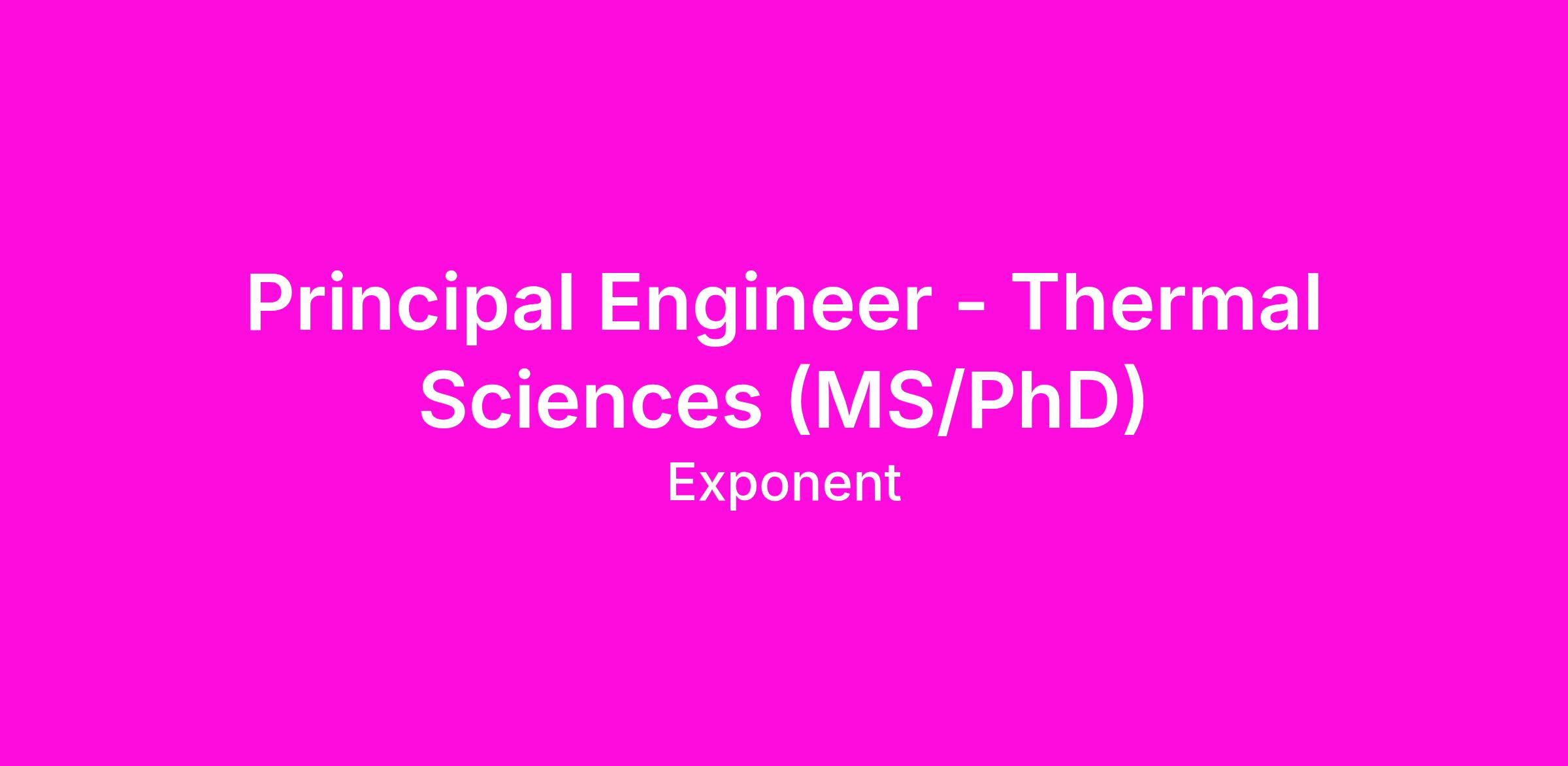 We are currently seeking a Principal Engineer for our Thermal Sciences Practice in Menlo Park, CA; Natick, MA; Chicago, IL Metro Area; Atlanta, GA; Seattle, WA; Los Angeles, CA; Denver, CO; Houston, TX; New York, NY; Washington DC Metro Area; Philadelphia, PA; Tampa, FL; or Phoenix, AZ. This position will involve applying fundamental engineering and scientific techniques to real-world problems in failure analysis, risk mitigation, and product development. As a Principal Engineer, you will cultivate relationships with existing clients, identify new business opportunities, lead teams to perform leading-edge technical analyses, and contribute to the growth of our Thermal Sciences Practice.