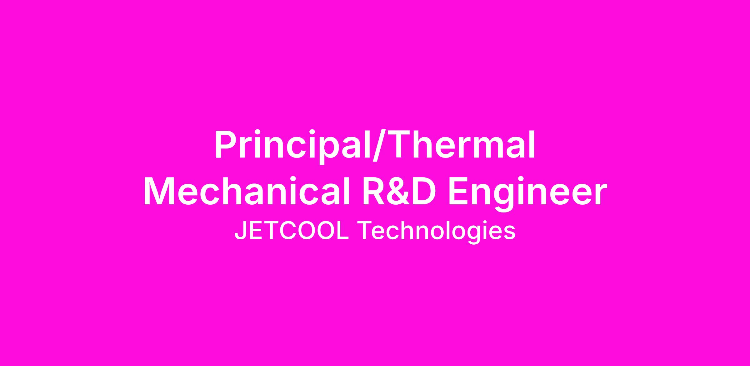 To support our exceptional teams in building innovative products, we are seeking a Principal Thermal/Mechanical R&D Engineer based in Littleton, MA. Reporting to the Sr. Director of Research & Development, the Principle Thermal/Mechanical R&D Engineer role is responsible for creating and implementing advanced, cost-effective thermal and mechanical designs that deliver outstanding product performance from early development through full-scale production. The Principal Engineer will provide technical leadership and mentorship while applying deep expertise in mechanical design, fluid dynamics, and heat transfer. In addition, this position will work closely with customers to deliver JetCool’s cutting-edge cooling solutions and foster strong technical relationships.