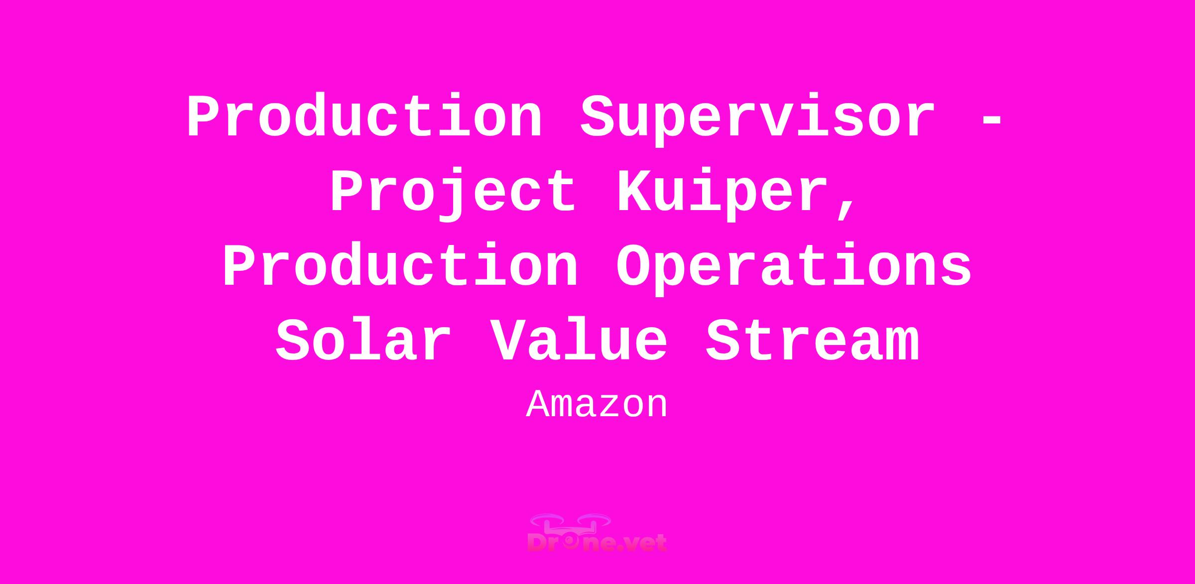 Project Kuiper is seeking a Production Supervisor to join the Solar Power Module and Solar Mechanical operations team to support production. This role will work closely with management to supervise a technician team that supports building and testing of many sub-assembly and up through the full assembly of the solar array. The individual will have strong leadership skills and be required to work on multiple projects in a fast-paced environment where communication and organization will be critical. They will develop training documents and standards and work closely with manufacturing engineering to ensure robust build instructions and operating procedures are created and followed, while also supporting new products and development as they push the bounds of satellite internet capabilities for our customers.