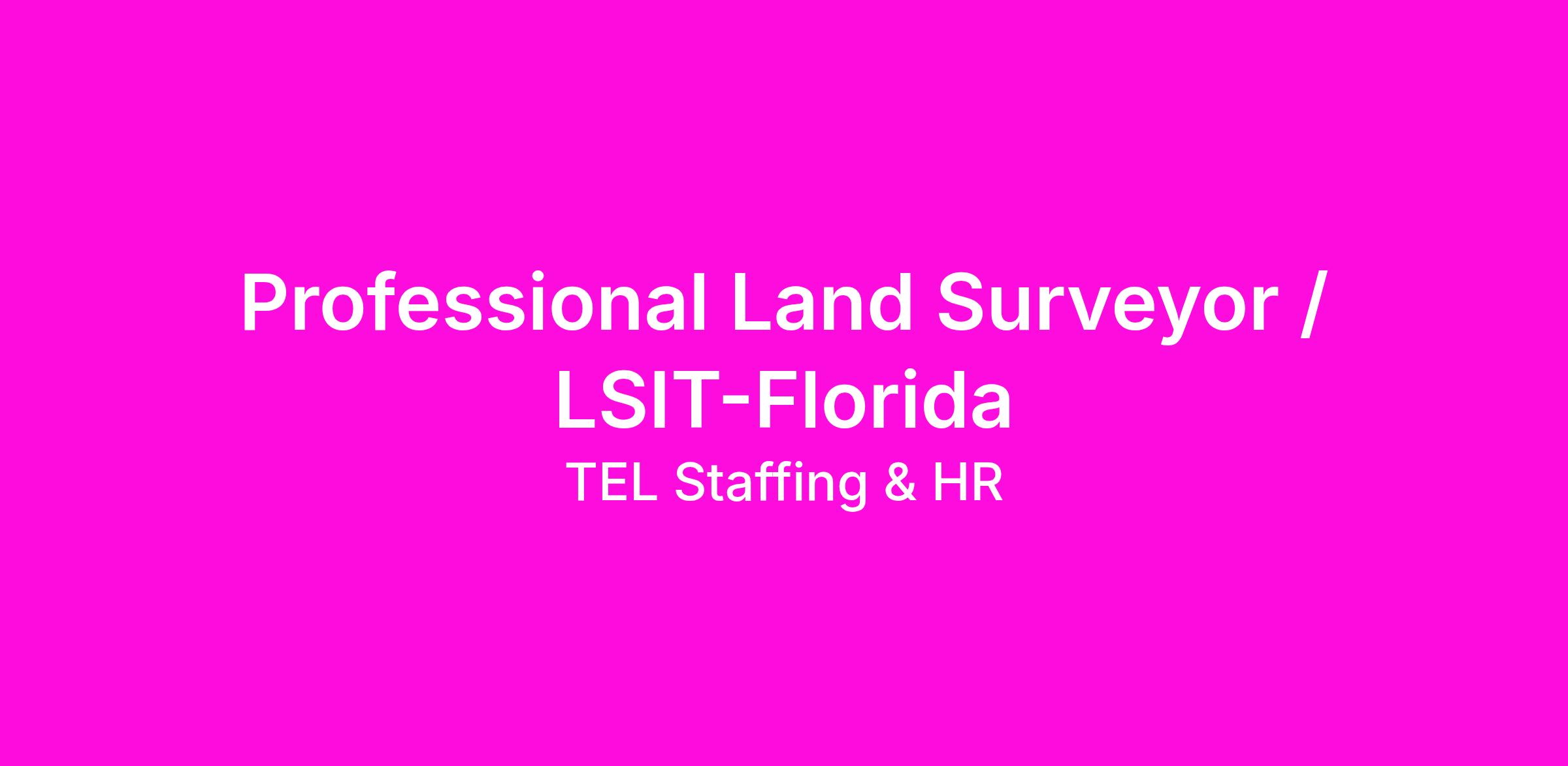 - Current Florida PLS license, or Land Surveyor-in-Training (LSIT) working toward PLS licensure.