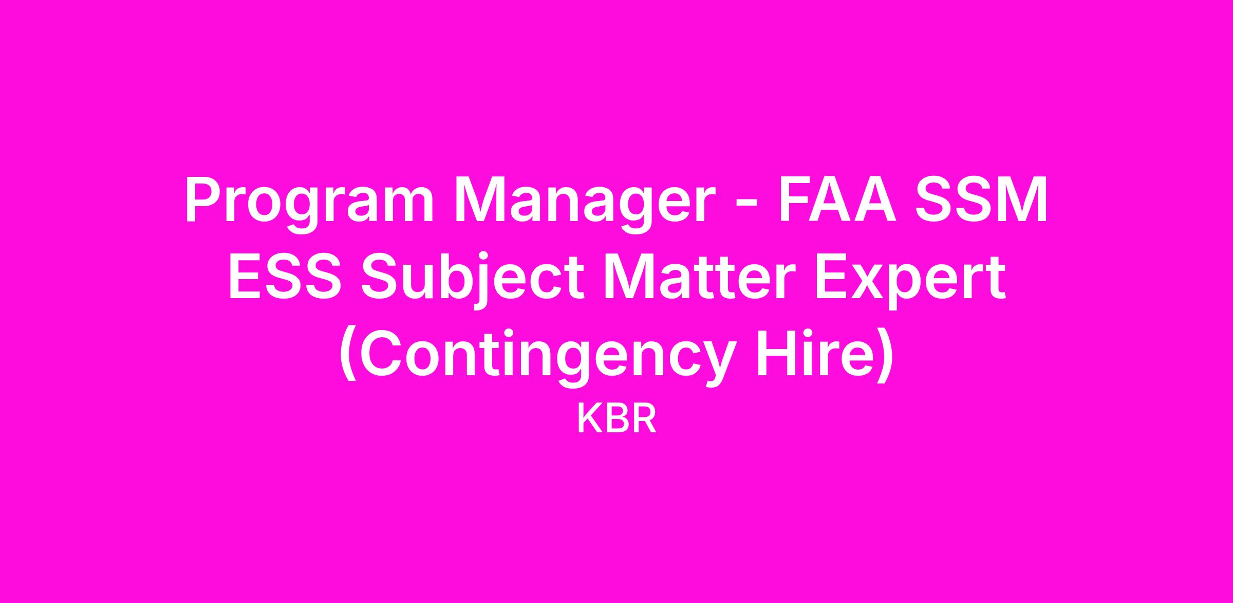 Program Manager - FAA SSM ESS Subject Matter Expert (Contingency Hire)