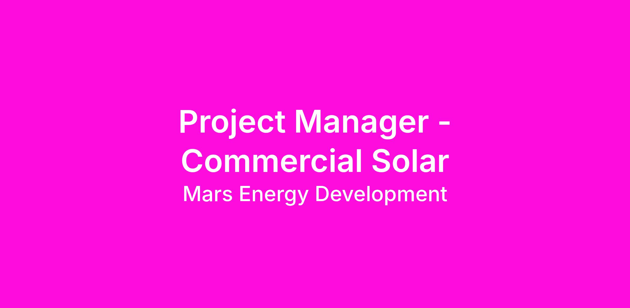 At MARS Energy Solutions, we specialize in delivering commercial-scale solar solutions that power schools, municipalities, and critical infrastructure across multiple states. As a trusted Engineering, Procurement, and Construction provider, we are committed to clean energy and smart growth. We’re looking for a Project Manager to lead solar construction projects with precision, professionalism, and purpose- from design through final PTO.