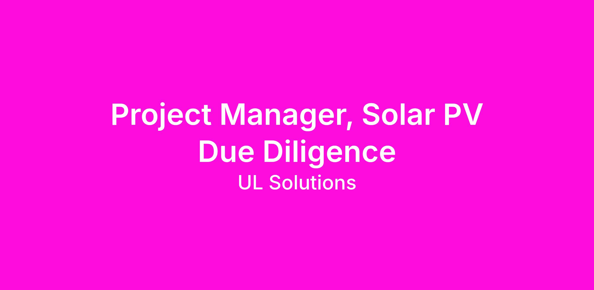 <div><strong>Description</strong><br/><p>As a member of the <strong>Solar Due Diligence</strong> team, the <strong>Project Manager</strong> is responsible for managing and executing independent engineering (IE), Owner’s Engineering (OE) and Technical Advisory (TA) services to support the financing, sale, or acquisition of solar PV projects and portfolios.</p>