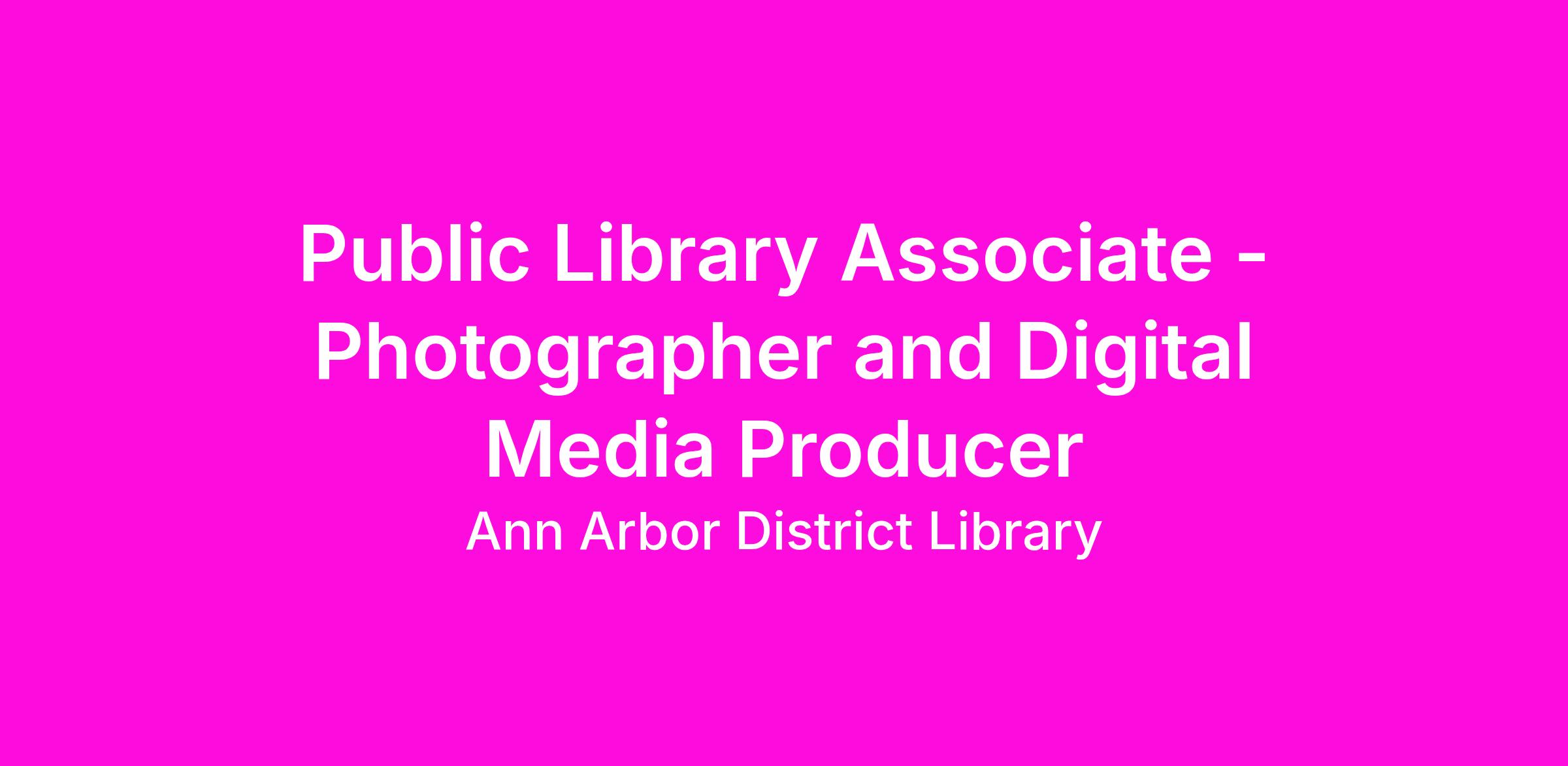 Public Library Associate - Photographer and Digital Media Producer