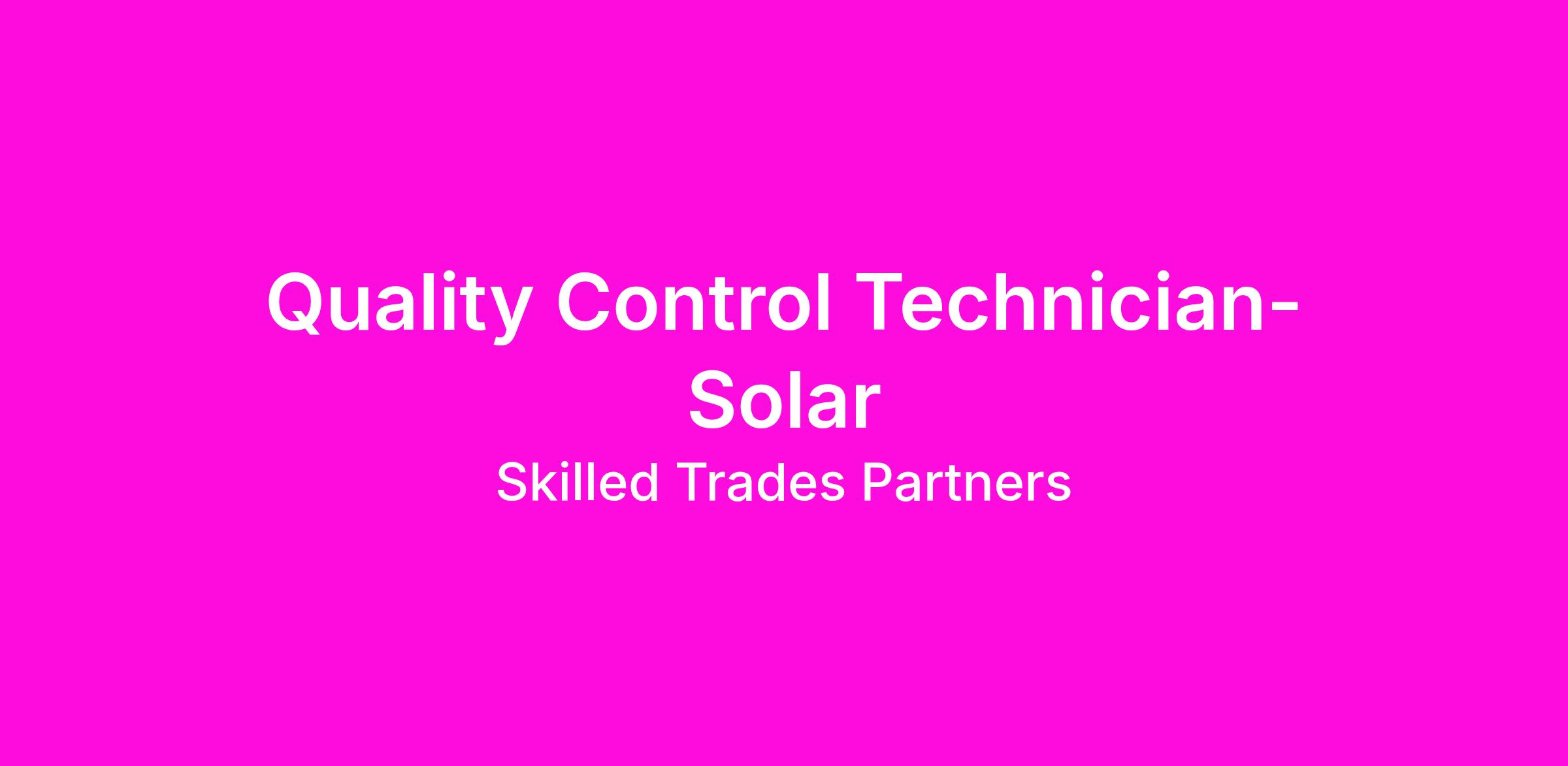 We are seeking a Quality Control Technician to support our Quality Control Manager in ensuring high standards across solar construction projects. This role involves inspections, reporting, and identifying issues before production. We’re a family-owned company that values teamwork, integrity, and a strong safety culture.