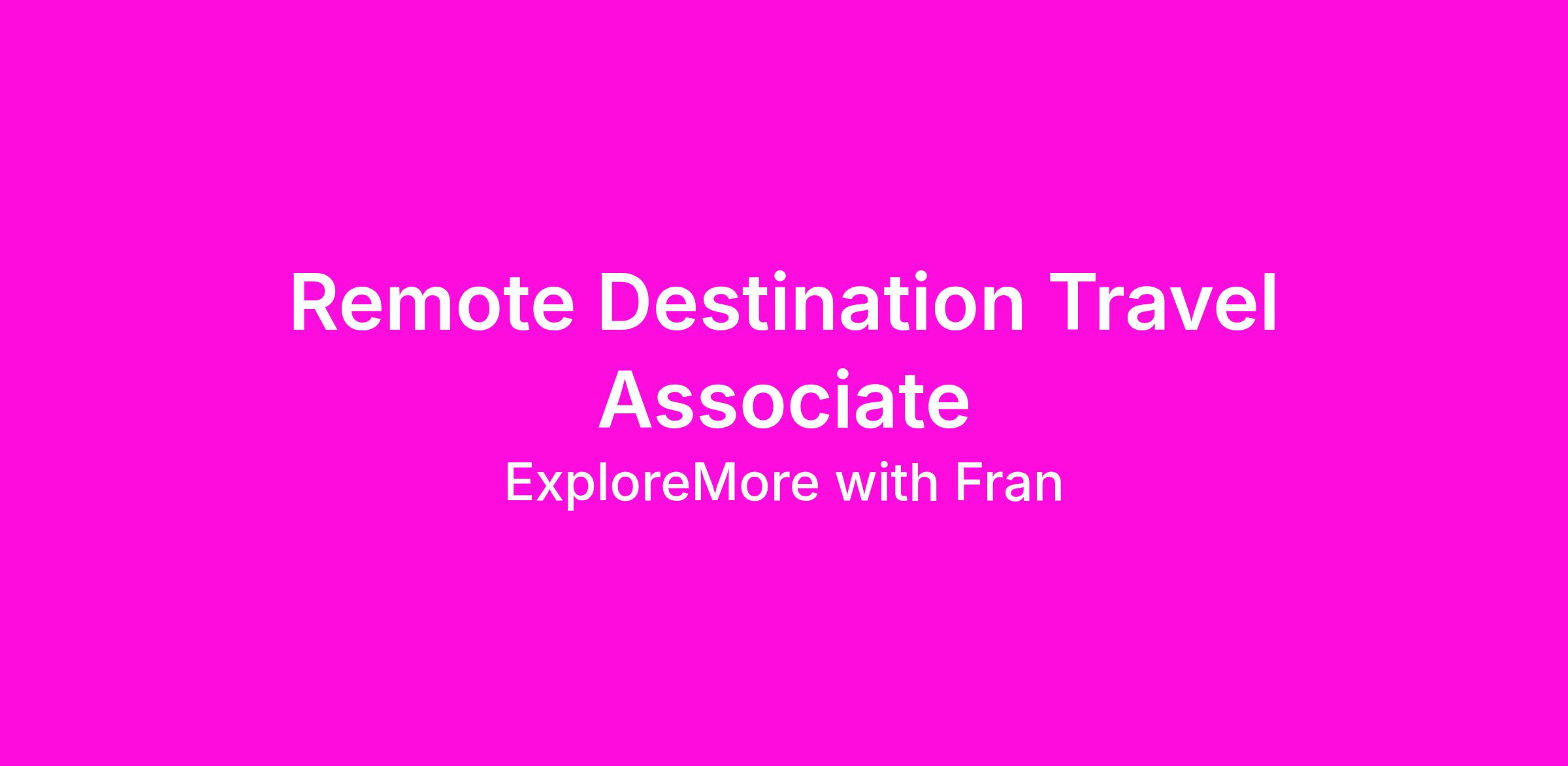 If you're passionate about travel and helping others, apply now to join us as a Remote Destination Travel Associate!