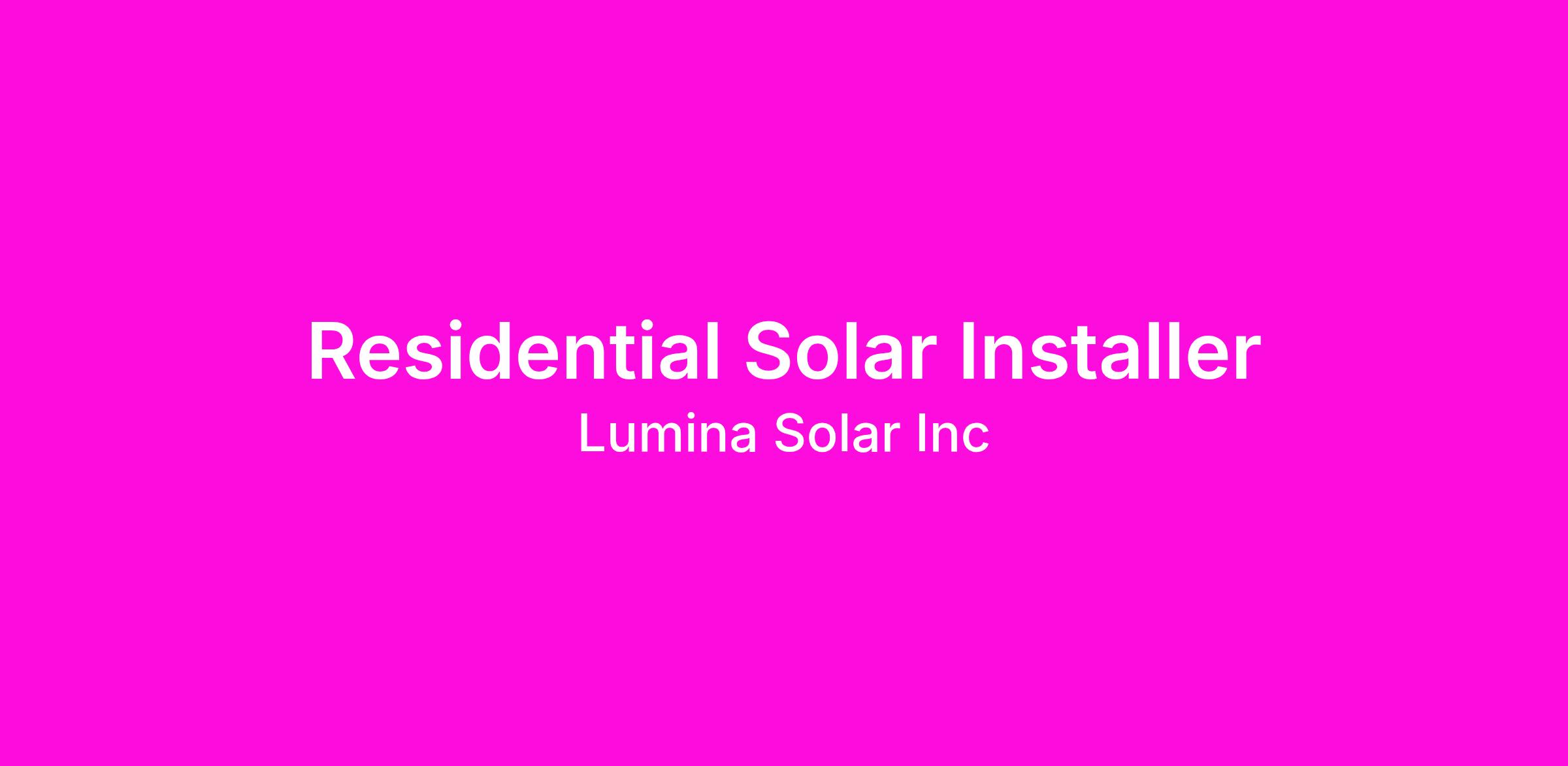 At Lumina, you’ll be part of a dynamic team where your expertise directly influences customer satisfaction and our company’s success. We prioritize innovation, professional growth, and making a real difference in the lives of our customers by helping them reduce costs and increase energy independence. Together, we’re lighting the way to a brighter tomorrow.