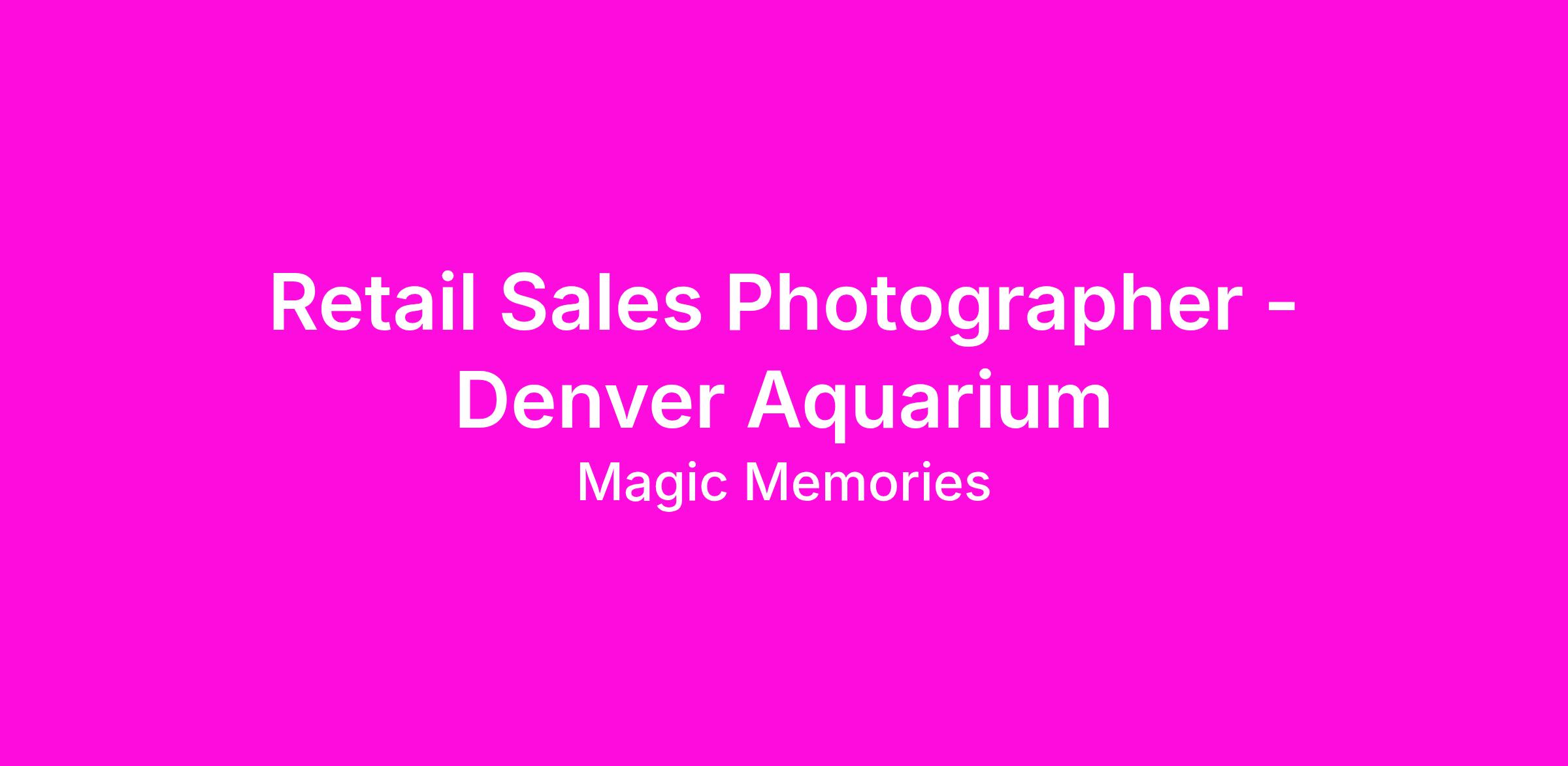 Picture yourself working at Magic Memories in a rewarding, fast-paced environment based in Denver, CO. We are actively hiring for a Retail Sales Photographer in an exciting and dynamic atmosphere located at our iconic attraction Denver Aquarium!