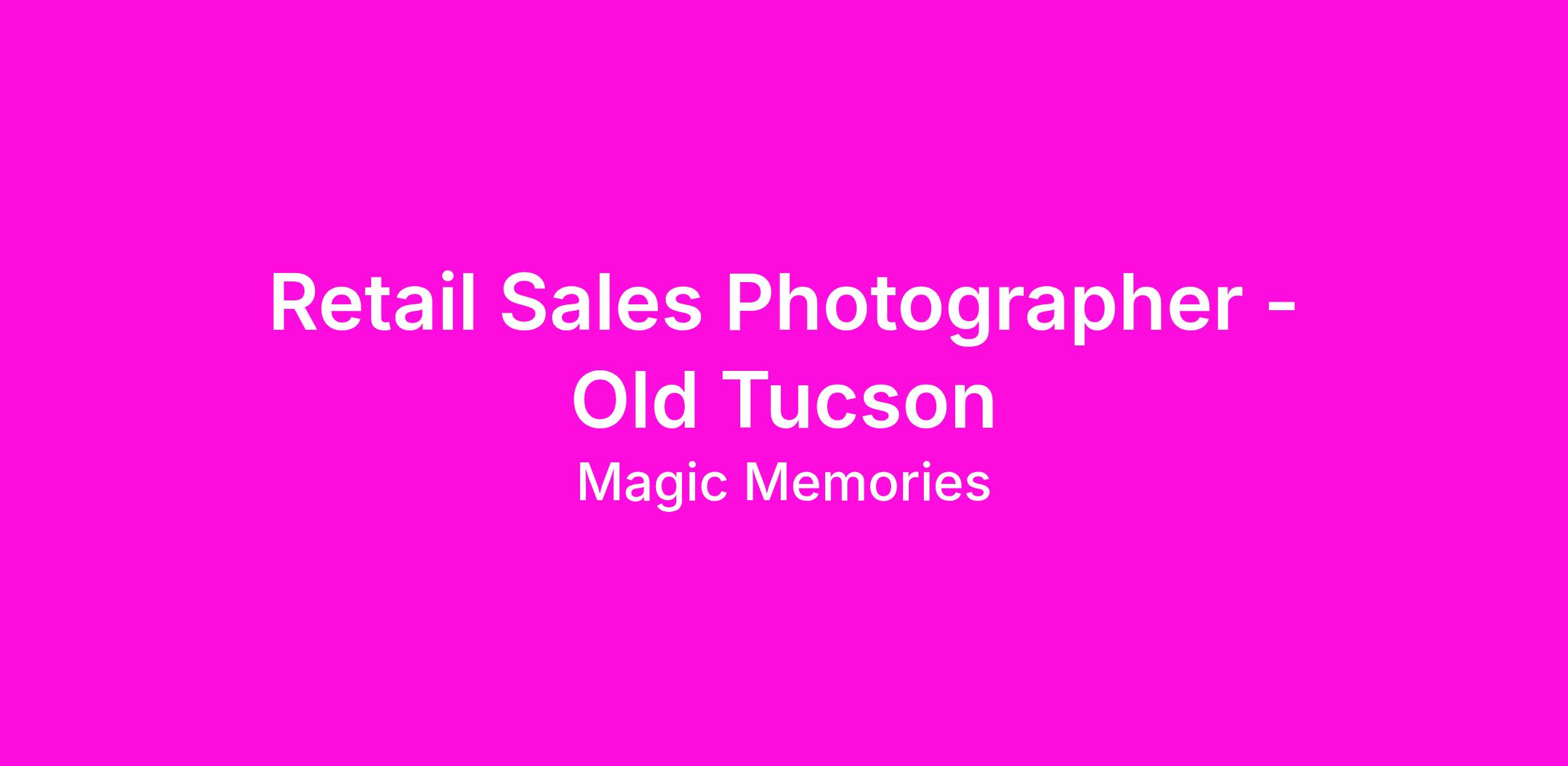 Picture yourself working in a rewarding, fast-paced environment based in Tucson, AZ. We are actively hiring for a Retail Sales Photographer in an exciting and dynamic atmosphere located at our iconic attraction, Old Tucson!
