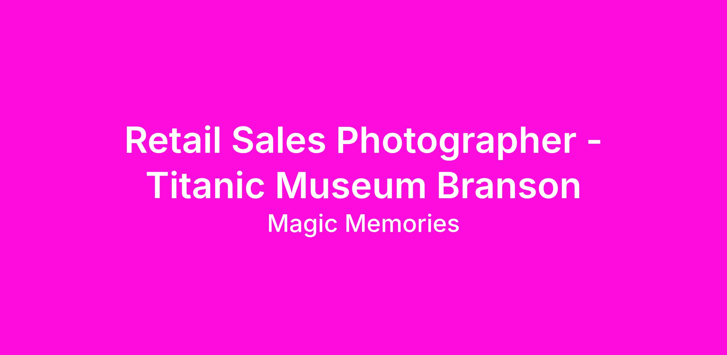 Picture yourself working in a rewarding, fast-paced environment based in Branson, MO. We are actively hiring for a Retail Sales Photographer in an exciting and dynamic atmosphere located at our iconic attraction in, Titanic Museum!