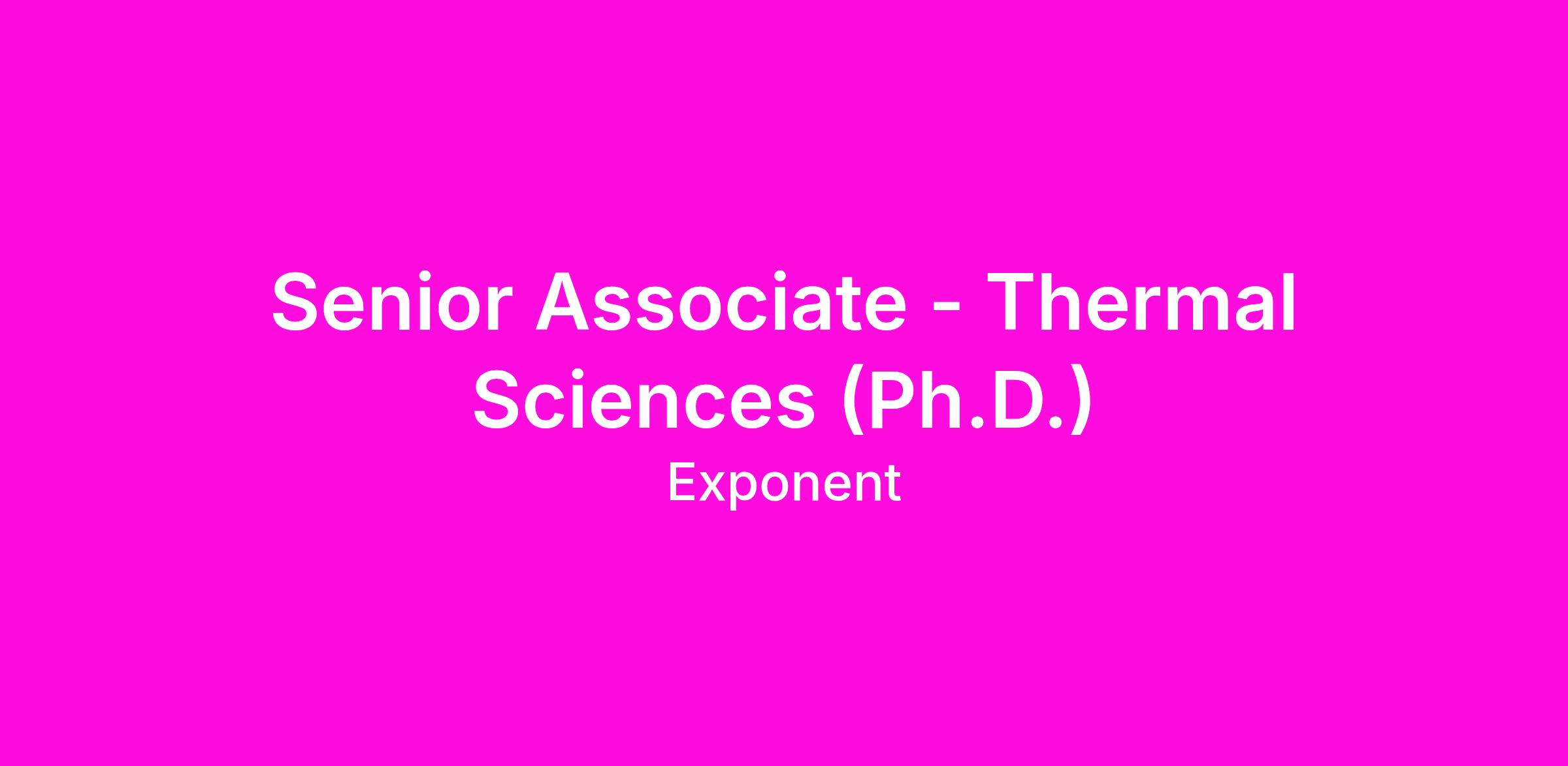 We are currently seeking a Senior Associate for our Thermal Sciences Practice in Natick MA. In this role, you will perform failure analysis and provide design support for complex problems involving fluid flow, heat transfer, mass transport, combustion and electrochemistry. Applications will primarily be in vehicles, consumer electronics, utilities, fire and explosion investigation, power generation, medical devices, and many others. Specific duties will include conducting, planning, and executing experimental test programs, conducting fieldwork and inspections, preparing proposals and technical reports, presenting to clients, and starting the process of developing new clients.