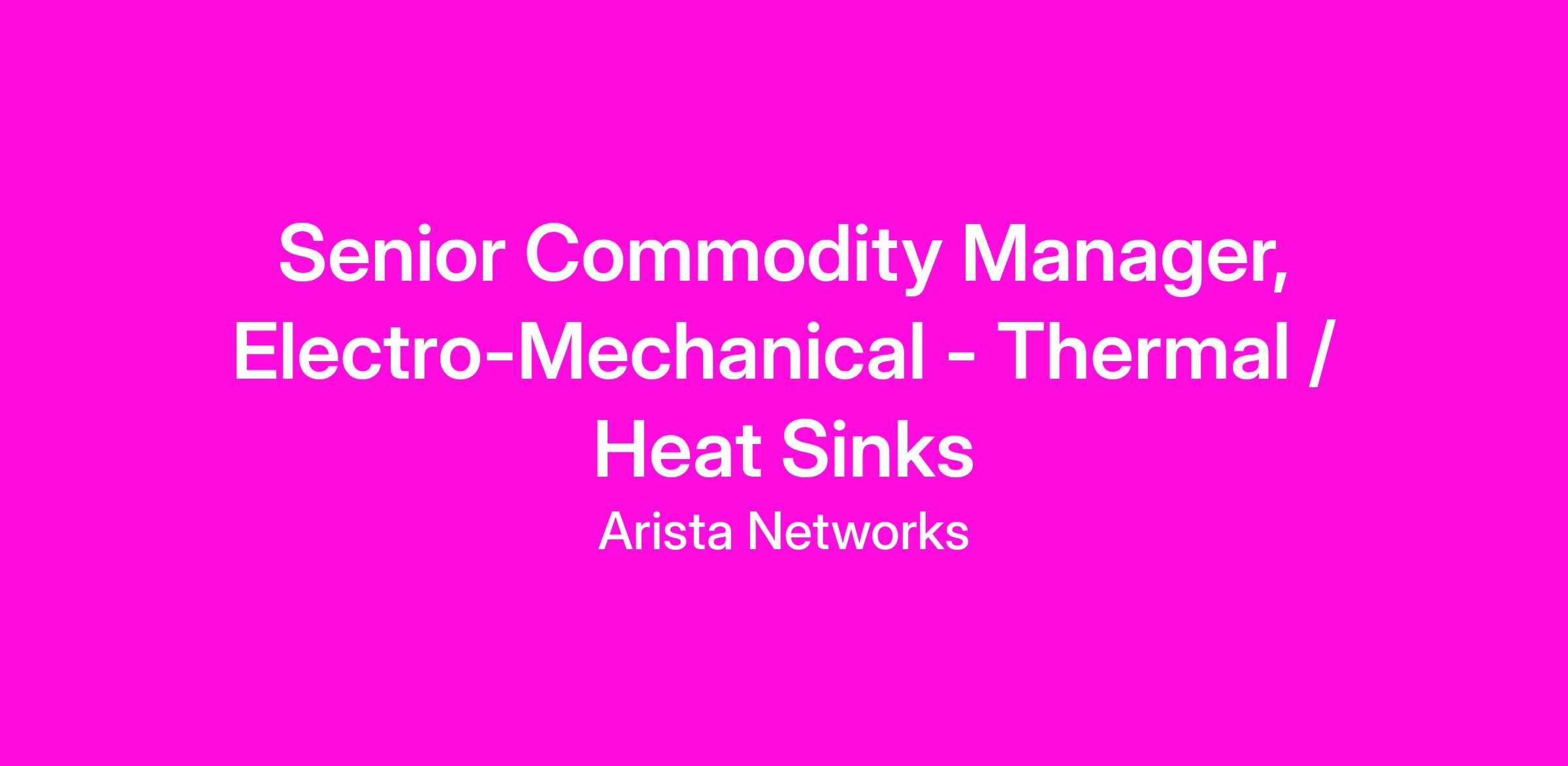 The Commodity Manager is responsible to develop Arista’s commodity strategies for Thermal / Heat Sinks (experience with Front end Power Supplies is a plus) in order to drive time to market, continuity of supply and meet cost reduction initiatives. You'll work across the supply chain to support operations and will be collaborating closely with Engineering on sourcing strategies.
