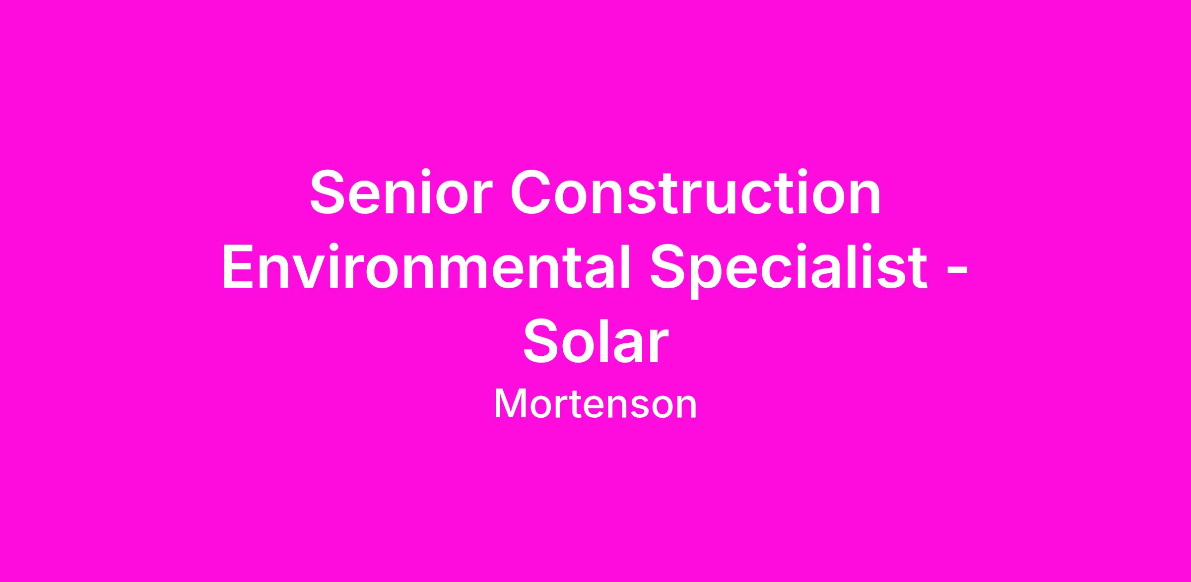 Mortenson is currently seeking a Senior Environmental Specialist to join our Solar group to provide support for environmental management efforts. In this role, you will review environmental documentation and advise on environmental matters. Strong communication skills are essential as you will interact with staff at all levels in a dynamic environment. Your ability to work well in a team and collaborate is vital to your success.
