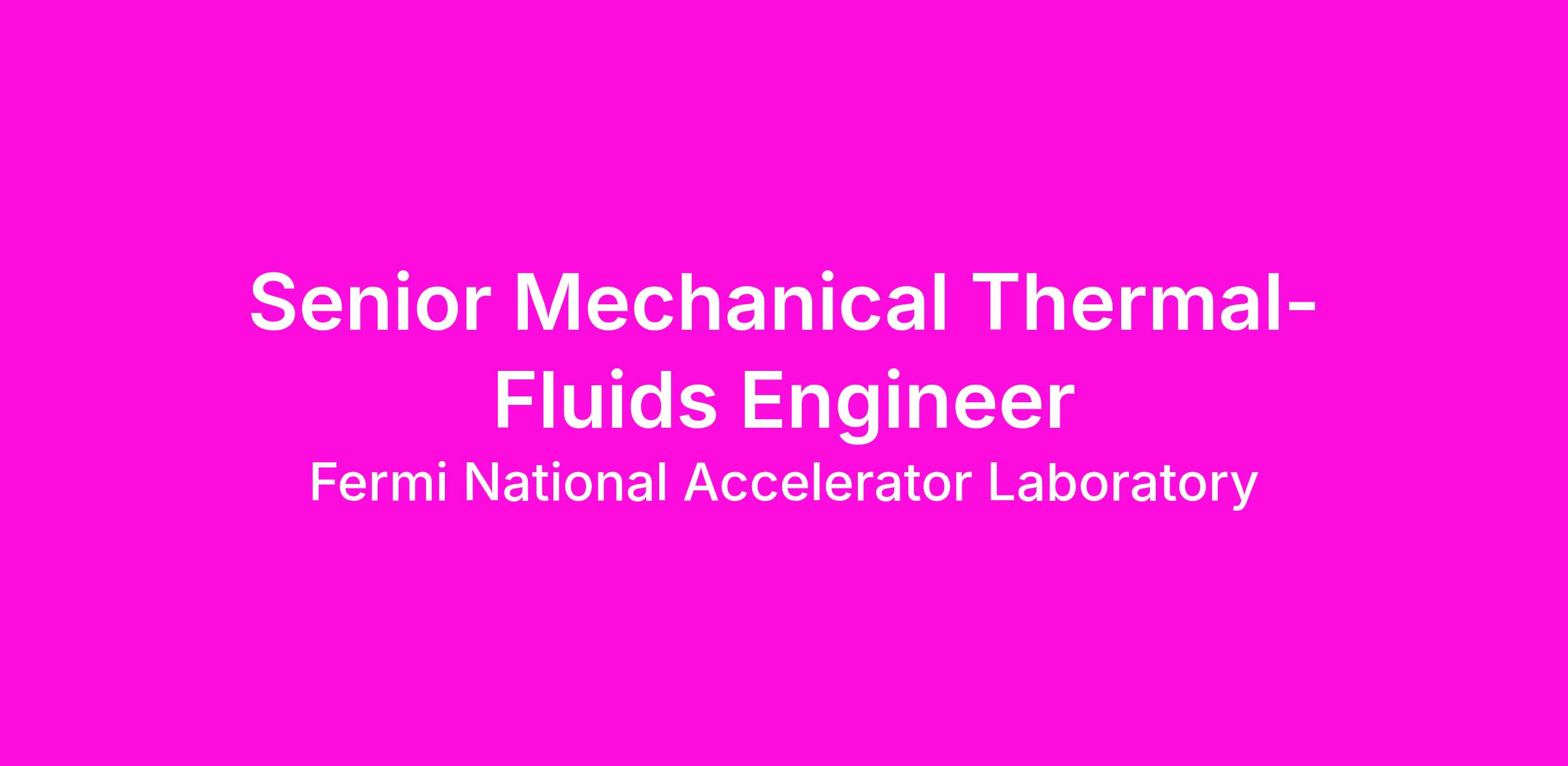Fermilab is seeking a Senior Mechanical Thermal-Fluids Engineer to lead the Thermal-Fluids Engineering Group who is a collaborator by nature and who seeks out the latest technology and tools to design, fabricate, test, install and operate components and systems for our particle accelerators. We use the latest technology such as ANSYS, NASTRAN, Siemens NX, and additive manufacturing (3D printing) to model, simulate, prototype, and test our designs. We work with vendors who stretch their technical abilities to fabricate the next generation of components and systems. We expand our engineering skills, and sometimes write the textbooks, to operate the existing accelerators. We work with collaborators throughout the lab and the world to plan future accelerators for projects such as the Long Baseline Neutrino Facility (LBNF) and Proton Improvement Plan II (PIP-II).