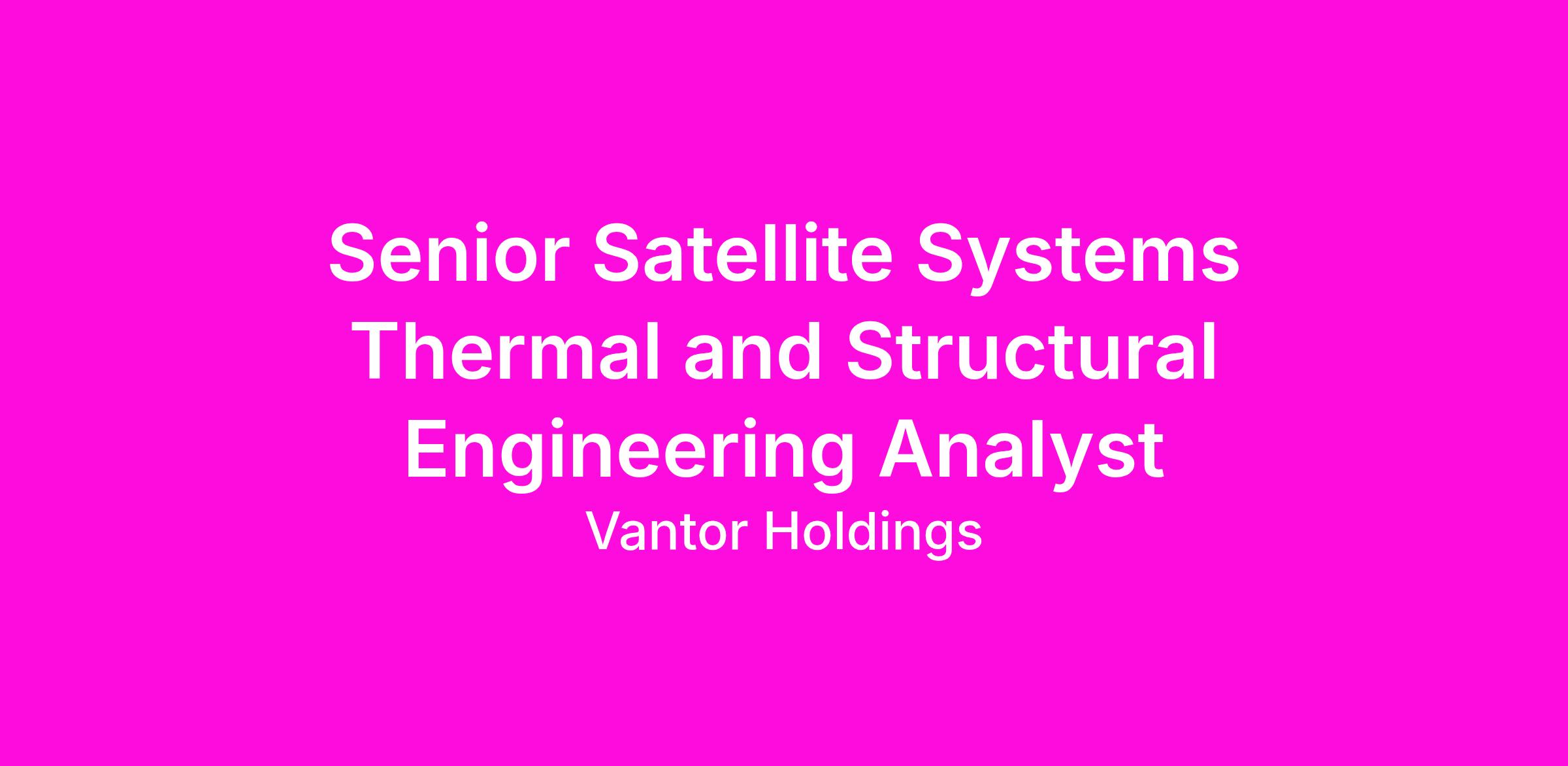 Vantor is hiring a Senior Satellite Systems Thermal and Structural Engineering Analyst to join our Satellite Systems Engineering team in Westminster, CO. The Satellite Systems Engineering team is responsible for defining the mission, satellite, and payload architecture behind next-generation space constellations. This role offers direct exposure to complex, integrated systems including spacecraft platforms, optical payloads, laser communications, and advanced onboard processing.