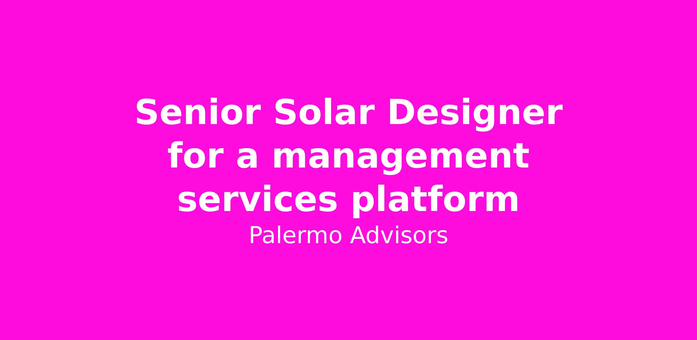 The Role:They're looking for a remote Senior Solar Designer who can ensure quality control of all designs from the designers and actually do the designs themselves, not wait for a revision when it's needed.