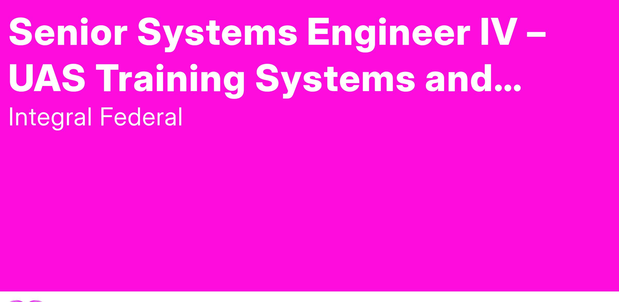 Senior Systems Engineer IV – UAS Training Systems and Mission Engineering