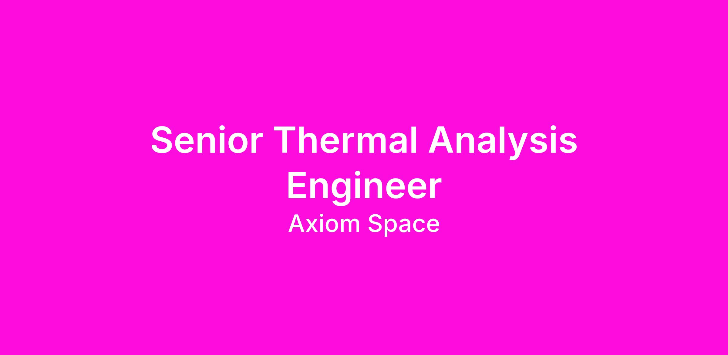 Axiom Space fosters a diverse environment inclusive of all perspectives. We are the pioneers of commercial space, leading the transformation of low-Earth orbit into a global space marketplace. Our mission-driven team is seeking a bold and dynamic Senior Thermal Analysis Engineer who is fueled by problem-solving, continuously curious, and driven to understand our world, science/technology, and life itself, for the benefit of all on Earth and beyond.